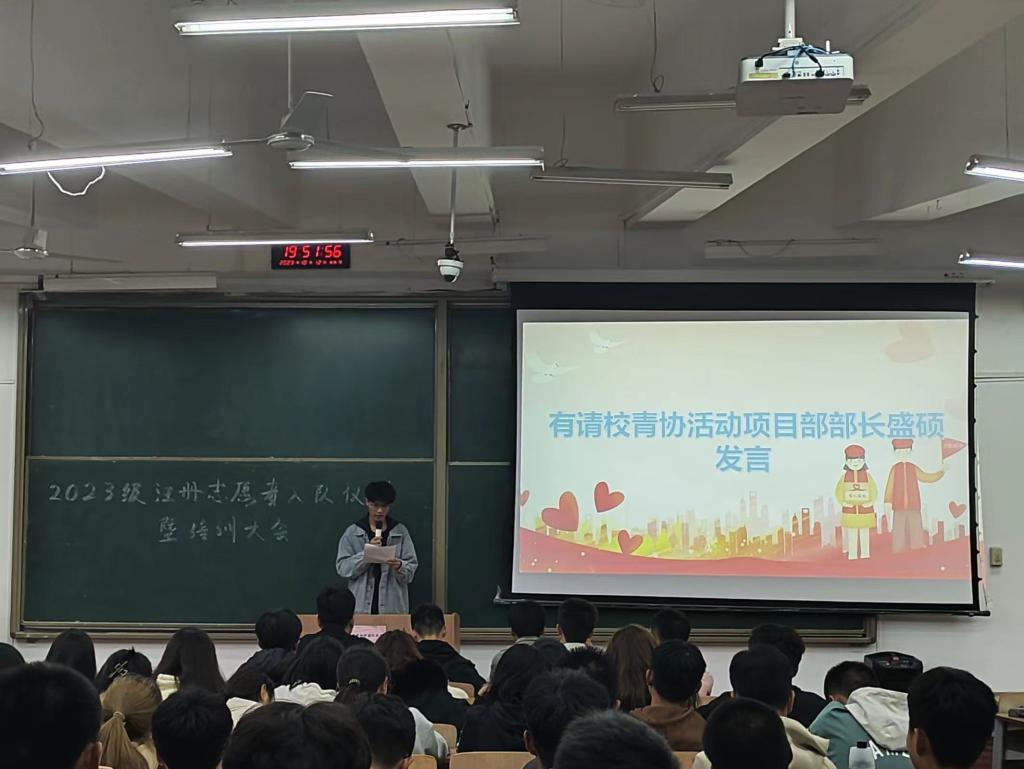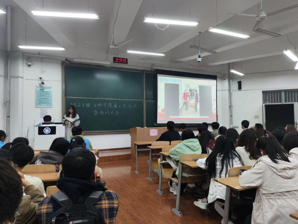 10月12日晚上,由西安工程大学理学院举办的2023级注册志愿者入队仪式暨培训大会在B237教室举行。理学院全体注册志愿者参与本次大会,学生会成员贺千彧主持会议。