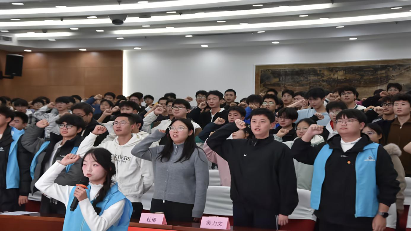 仪式在《光荣啊,中国共青团》庄严旋律中拉开序幕。全体与会者肃立齐唱,激昂歌声回荡厅堂,澎湃旋律与铿锵词句交相辉映。团歌礼毕,院团委书记杜倩以“志愿者身份认知”为核心主题,为新队员讲授入队第一课。她强调,成为志愿者意味着超越个体局限,投身社会服务场域,以真诚付出传递温暖,以切实行动践行善念。