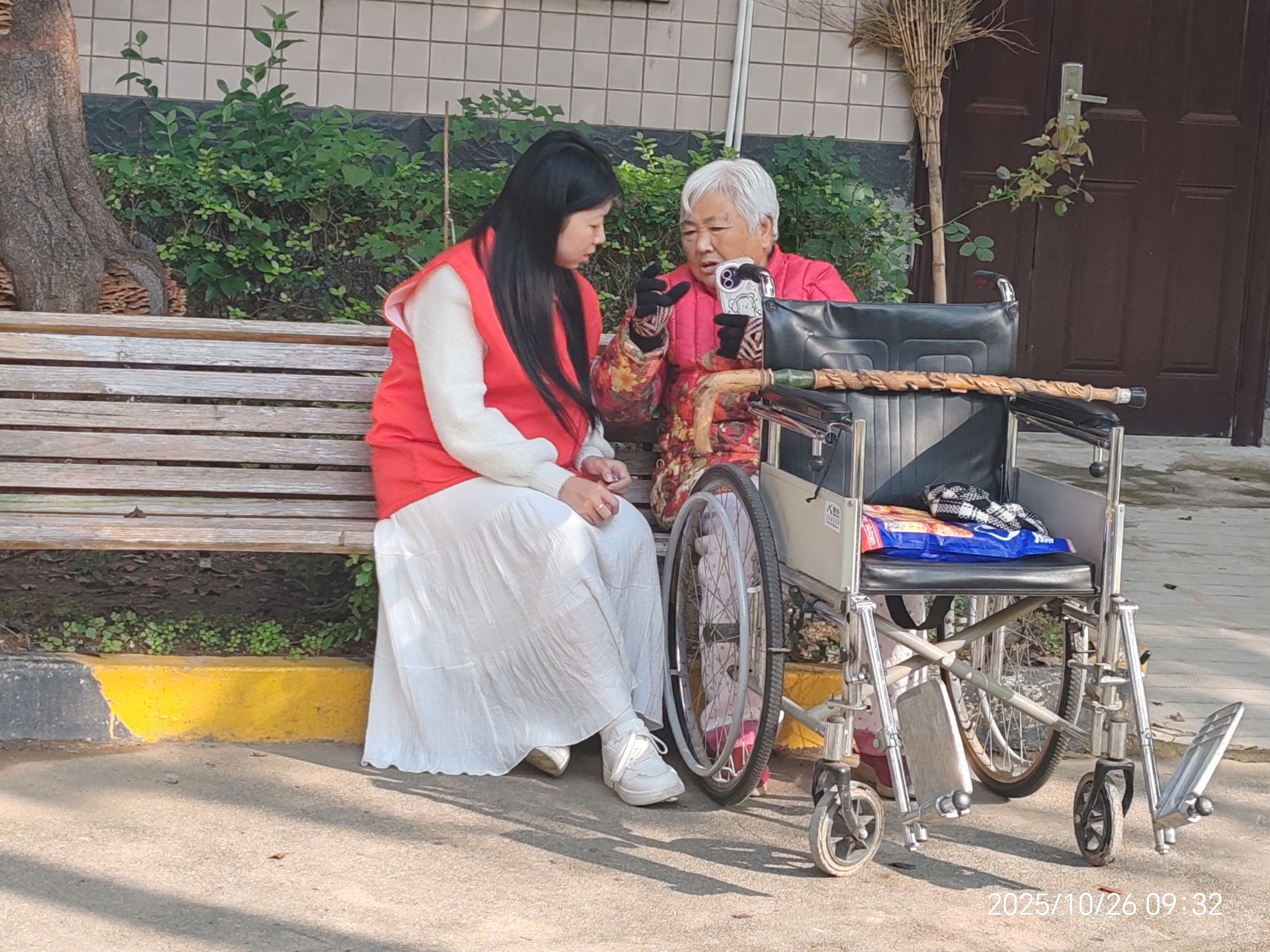 活动现场温情涌动,暖意融融。情感陪伴区内,志愿者们将精心制作的重阳祝福卡片送到老人手中,围坐身旁耐心倾听往昔岁月故事,用亲切家常拉近距离、慰藉心灵;《映山红》《茉莉花》等经典歌曲的深情演唱与灵动的民族舞蹈表演,点燃了现场氛围,让养老院里欢声笑语不断。生活关怀组秉持“重阳助老”初心,自带清洁工具深入老人居室与公共区域,细致擦拭门窗、规整物品、清扫积尘,用双手为老人们营造整洁舒适的生活环境。最具特色的“时光修复”专区人气高涨——志愿者们借助笔记本电脑与专业软件,一对一为老人修复泛黄、破损的旧照片,通过降噪优化、色彩还原、破损修补等技术手段,让模糊的影像重归清晰,让褪色的记忆焕发光彩。当老人们接过修复一新的照片,眼中满是激动与欣慰,连连称赞“这是最特别的重阳礼物”。