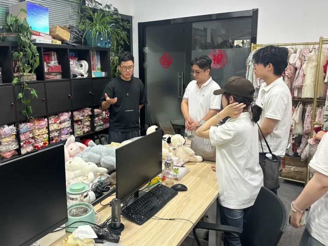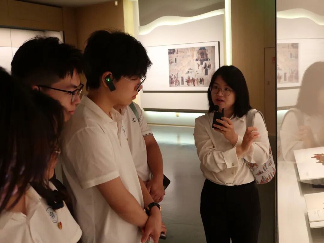 7月18日至19日,团队参访中国丝绸博物馆,系统了解丝绸生产工艺与织造技术,探究丝绸在服饰文化中的应用及其与丝路文明的历史交融。成员们重点解析连珠纹、鹿纹、太阳神纹等典型纹样,结合现实原型考察其文化寓意与审美价值。期间,团队还走访杭州蛋堡网络科技有限公司,与企业负责人交流服装产业发展趋势与就业形势,进一步拓展了对现代服装产业链的认知视角。