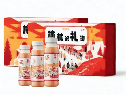 实践接近尾声,设计组的醋饮包装方案完成:主色调选鲜明红与暖黄,红色呼应陕北地域文化中的热情、喜庆,暖黄模拟黄土高原阳光色泽,营造质朴温暖氛围,强化地域印象。“榆林的礼物”字体设计兼顾传统与现代,笔画形态融入陕北书法韵味,醒目突出主题;辅助说明文字清晰规整,保障信息传达,平衡艺术感与实用性。这一兼具传统韵味与现代审美的包装方案,获得了黄土地公司的认可,也体现了队员们在实践中将专业知识与乡村需求相结合的能力。