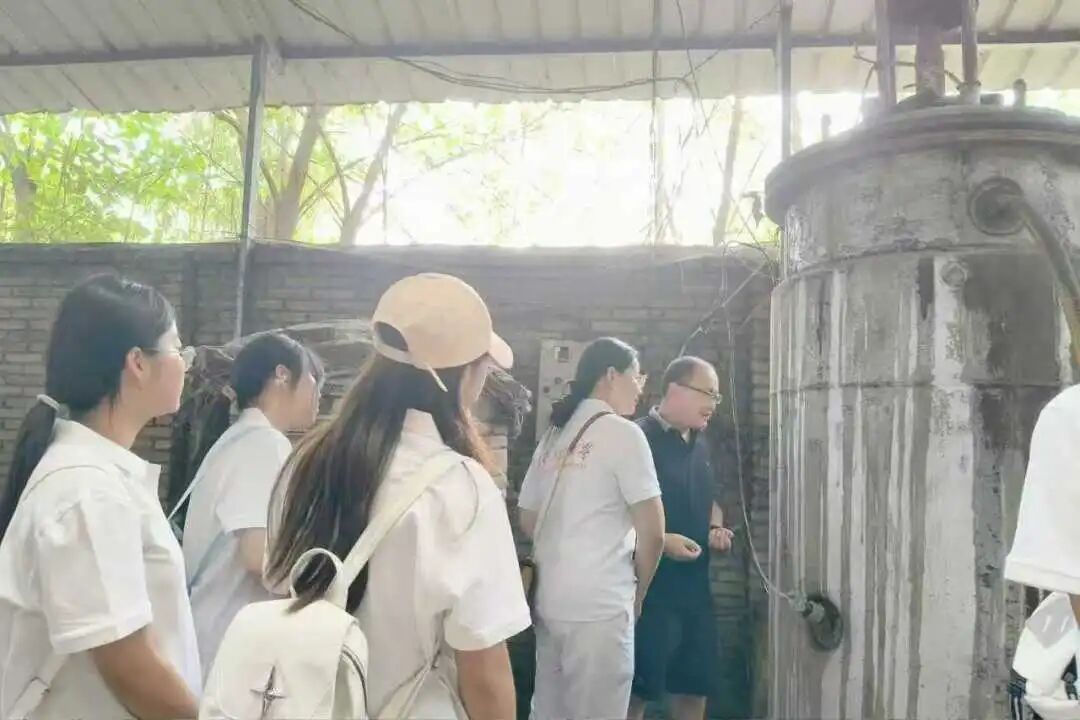 7月10日,实践团队前往周至县司竹镇红丰村西安恒茂肥业有限公司开展技术帮扶。总经理刘小青详细介绍了以蘑菇菌渣、秸秆等农业废弃物为原料,采用定向微生物发酵技术,转化为优质有机肥基料,再复合功能菌剂制成环境友好型生物肥料。团队系统考察了微生物菌剂从原料仓储到槽式发酵的全流程生产工艺,针对企业提出的芽孢杆菌发酵芽孢率低和液体菌剂储存困难的技术瓶颈问题,带队教师何艳慧结合团队在高密度发酵、微胶囊化菌剂保护技术方面的成果,提出了切实可行的优化方案。通过深入交流,双方在技术攻关与成果转化方面达成合作意向,为推动产学研深度融合迈出重要一步。