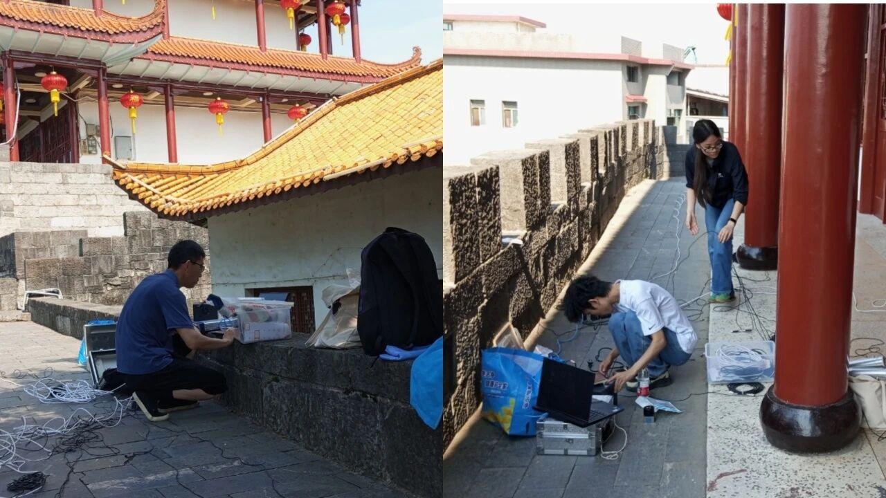 在六天的检测中,团队运用先进的无损检测技术,对城墙墙体、城门等关键部位进行了全面“体检”。他们在不同位置布设传感器,记录城墙在环境激励下的振动响应,以此分析其动力特性。团队成员魏茜、康清煜等负责数据处理与分析,确保数据有效性。仲伟秋博士形象地解释:“结构的动力特性就像人的心率,能直观反映健康状态。”这些核心参数将为后续数值模拟提供依据,用以评估城墙在地震、暴雨等极端条件下的稳定性。同时,团队还对城墙外观进行了详细勘查,系统记录了裂缝、风化等病害情况。