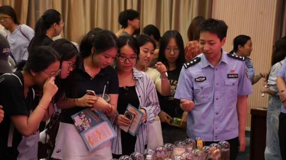 6月25日实践队首站在西安工程大学金花校区联合西安市禁毒办专家举办禁毒宣讲。禁毒警官结合案例,系统讲解了传统毒品与新型伪装毒品(如“毒奶茶”、“跳跳糖”)的危害特征与识别方法。在警官们的专业讲解下,师生们近距离、清晰地观察了各类毒品及新型伪装毒品的仿真模型,“零距离”接触加深了对毒品外观特征的认识。整个展示与互动环节有效提高了大家的识别能力和防范意识。