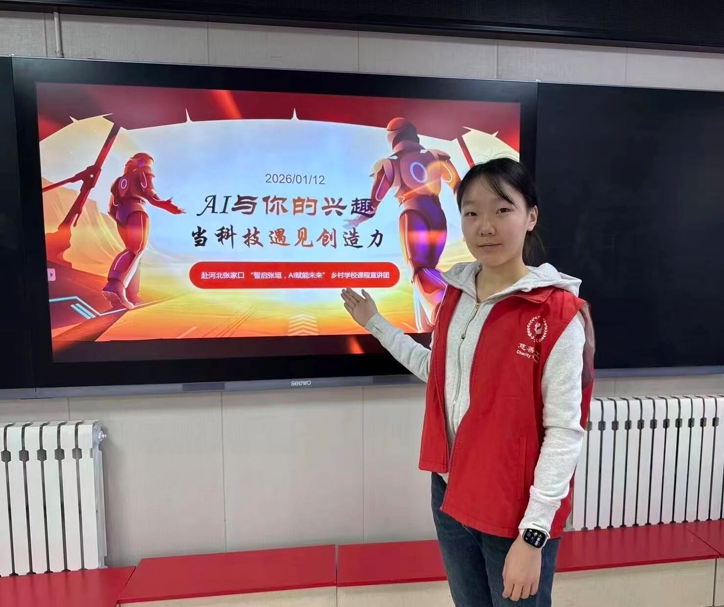 1月20日至30日,西安工程大学播音与主持艺术、广播电视编导、会计学专业的学子们,组成一支特别的跨学科实践团,奔赴河北张家口桥东区的东望山九年制学校,开展了为期十天的“智启张垣,AI赋能未来”寒假社会实践活动。他们以精心打造的AI启蒙课程为核心,在这所乡村学校里,为孩子们推开了一扇通往人工智能世界的探索之窗,也在实践中收获了丰硕的成果与真挚的感动。