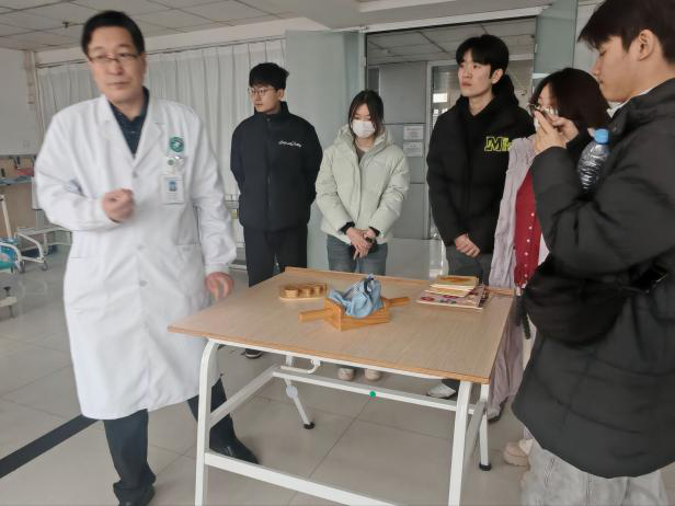 康复科王主任结合多年临床诊疗经验,为实践团系统讲解了康复医学领域的发展现状,并围绕调研核心问题,剖析当前临床康复医疗中的痛点与技术需求,同时结合科室实际,介绍了传统与现代康复疗法在临床中的应用场景及配套设备的使用情况。