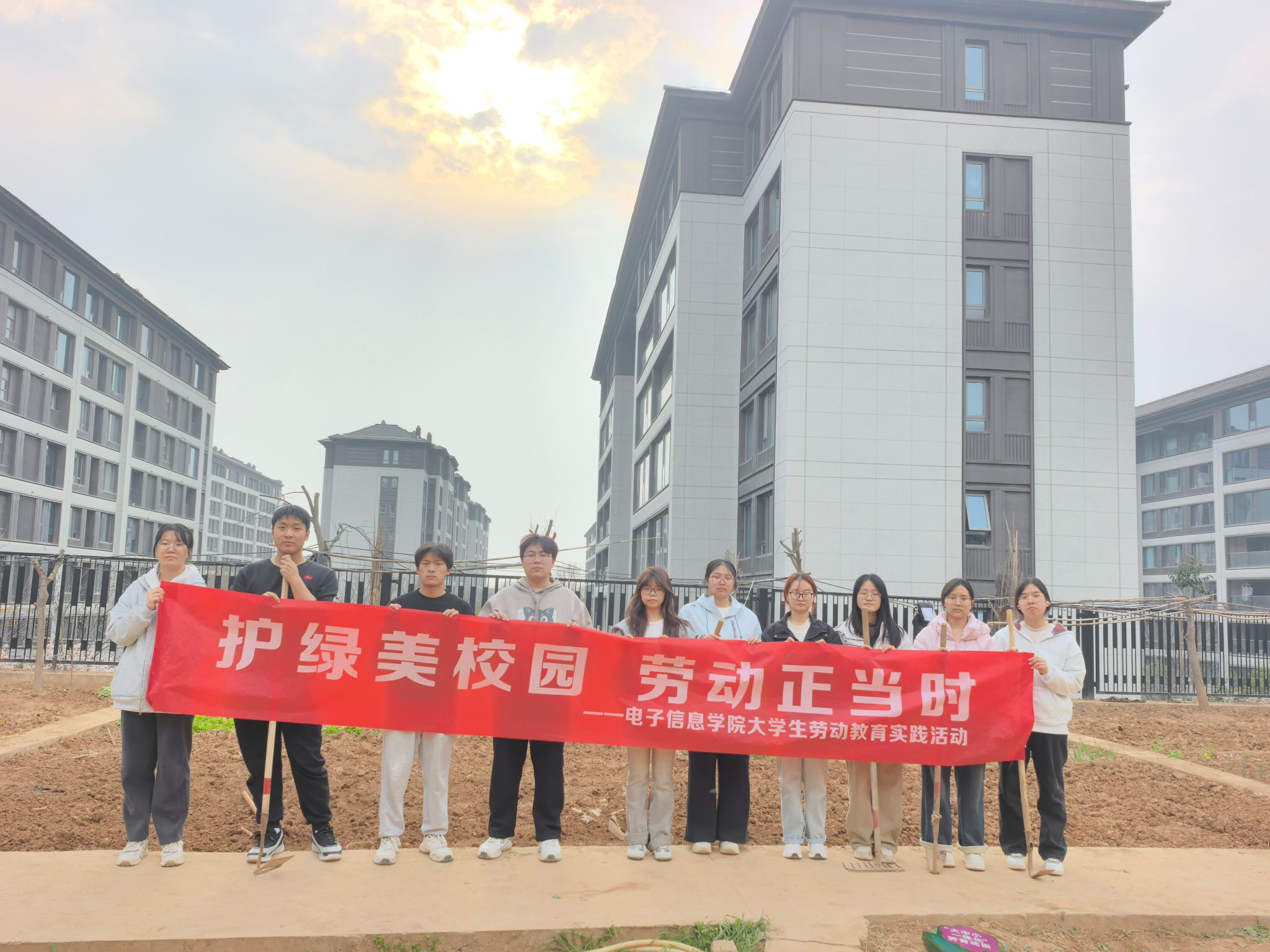 耕读小园赴春约,青春感悟润初心。为深化劳动教育与生态文明教育融合实践,3月12日植树节当天,电子信息学院组织10余名学生前往学校耕读小园劳动实践教育基地,开展“躬耕添新绿,劳动沐春风”主题劳动育人实践活动。同学们齐聚田间,躬身耕耘,在亲身劳作中体悟劳动价值,在交流分享中传递植树节的生态理念与青春情怀。