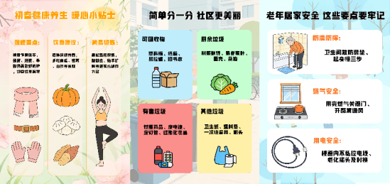 第一阶段实践结束后,服务队聚焦东大街社区老年群体众多、信息获取不畅的痛点,将服务重心进一步向适老便民倾斜,一月底至二月底筹备“暖阳助老,情暖社区”相关物料。队员们分工协作、各司其职,设计组依托排版设计专业技能,紧扣老年人“看不清、拿不住”的阅读难题,反复打磨社区便携小册子与大字版宣传海报的版式设计;文案组深入梳理冬季及初春养生常识、居家安全要点等实用信息,对内容进行优化;联络组持续对接社区居委会,精准调研老年群体核心需求,协调物料制作耗材与活动实施细节。筹备过程中,队员们集体审核稿件,严格遵循字号、配色等适老标准,确保物料实用便捷。