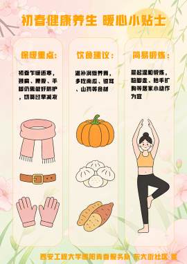 西安工程大学服装与艺术设计学院暖阳青春服务队,在孙晨倩老师的带领下,自一月中旬起在西安市碑林区柏树林街道东大街社区开展系列社会实践活动。服务队紧扣社区需求发挥专业所长,从多元便民服务到适老物料筹备,再到二月底助老宣传落地,为社区居民送上关怀,让青春力量在基层治理中绽放光彩。