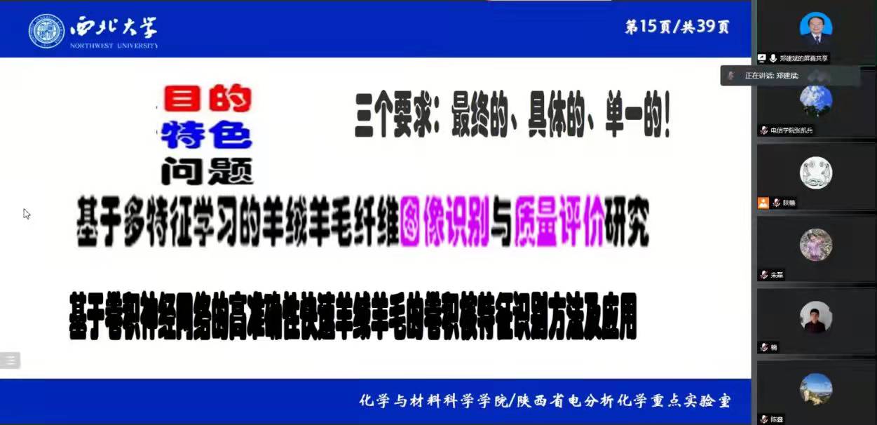 会议分三个部分。首先,郑教授为参会教师作了题为“国科金项目选题及其分析新方法”的专题报告,报告从改变申报基金观念入手,重点围绕如何设计研究内容、突出创新特色和构建科学问题等重点方面进行了讲解,并结合具体案例,对国家自然科学基金项目申请书中创新与特色的层次化写作技巧进行了重点介绍。