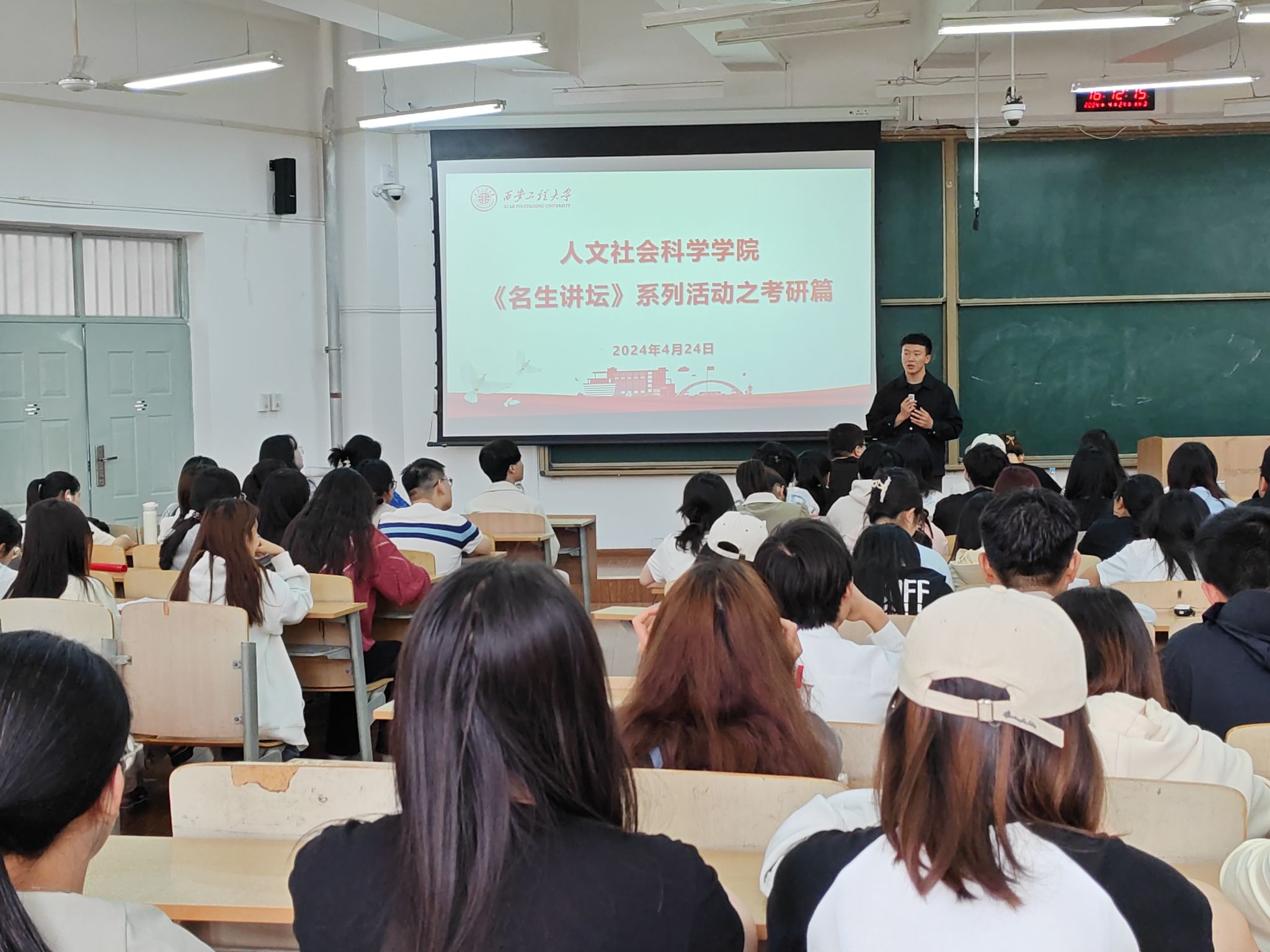 为培养优良学风,进一步发挥朋辈榜样的示范引领作用,激发学生学习内驱力,帮助同学们解决职业规划道路上的种种困惑,人文社会科学学院于4月24日在教学楼B-233继续开展《名生讲坛》系列活动,本期活动为考研经验分享会。学院团委书记刘杨扬,辅导员王德利、王菲及260名人文学子参加此次活动。本次分享会由王德利主持。