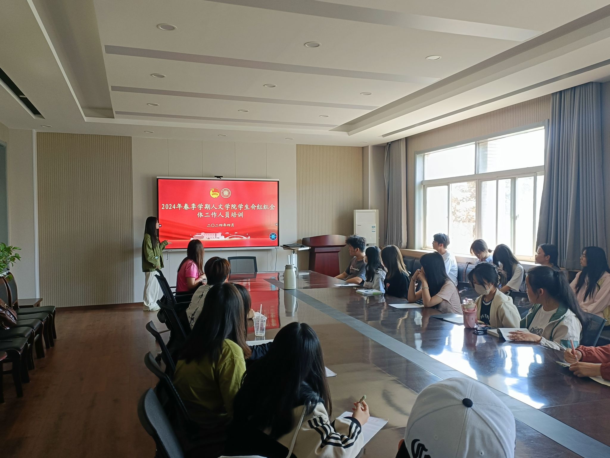 为进一步深化新时代学联学生会改革和建设,加强学生组织建设,切实发挥学生组织思想引领、服务青年成长的作用,人文社会科学学院学生会于4月26日中午在人文楼326会议室召开了2024年春季学期学生会工作人员培训会暨主题联学读书会。学院学生会主席团成员和各部门人员参加了此次会议。