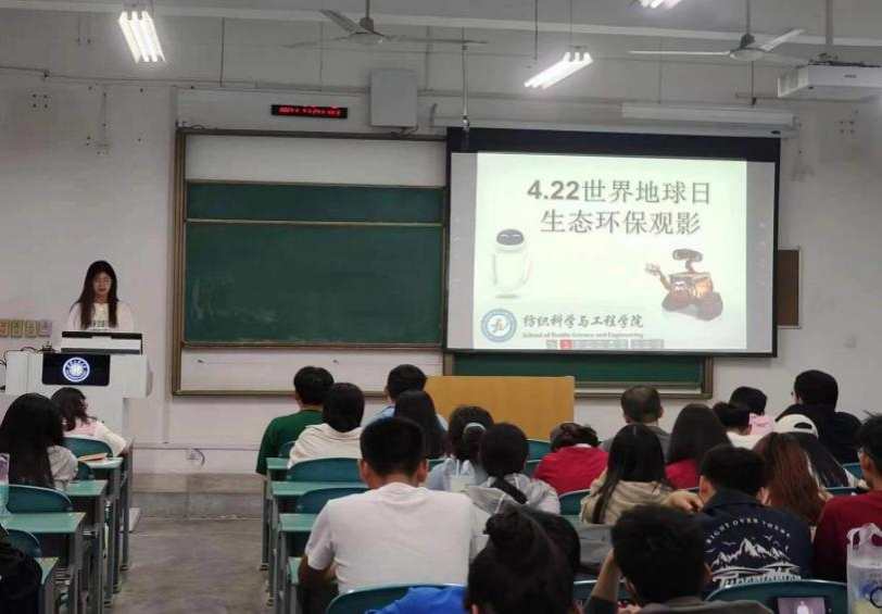 4月22日是世界地球日,为进一步提升学院学生的生态环保意识,倡导大家爱护我们共同生存的地球,纺织科学与工程学院在临潼校区举办生态环保观影活动。本次活动由纺织科学与工程学院青年志愿者协会主办,各班班级志愿者积极参与,共同为保护环境贡献力量。