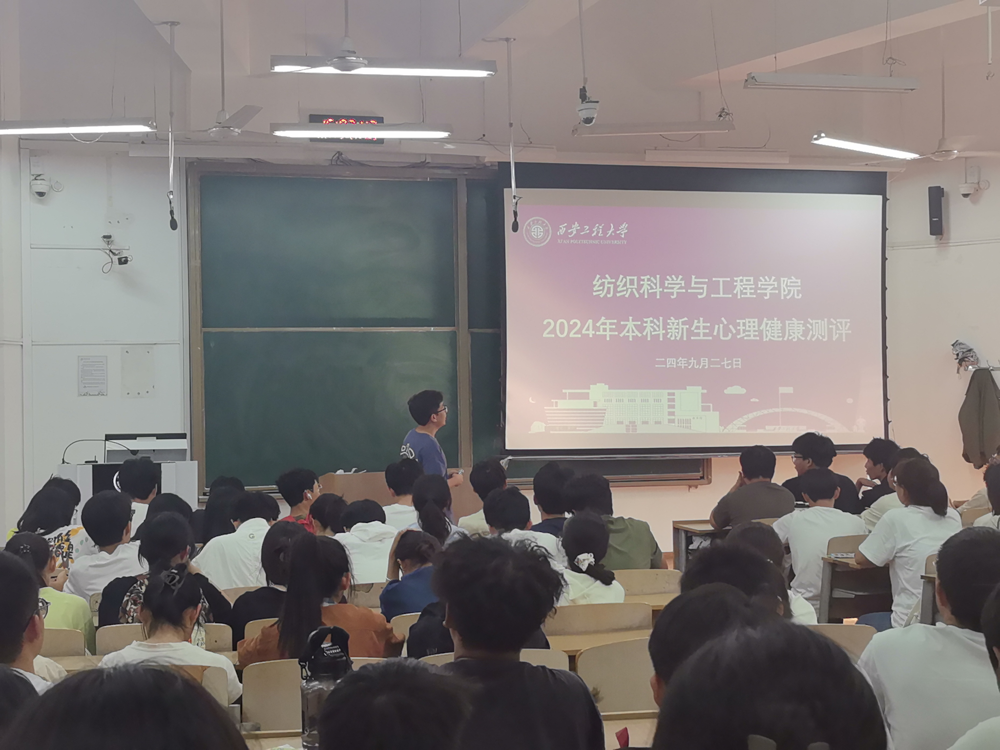 为切实落实学校心理健康教育工作的相关要求,全面了解2024级新生的心理健康状况,纺织科学与工程学院于9月27日组织了全体本科及研究生新生进行心理健康测评。此次活动得到了学院领导的高度重视,学院学工办主任姚婕、院团委书记曹鑫以及心理辅导员邓恩征全程参与指导,确保测评工作有序高效开展。