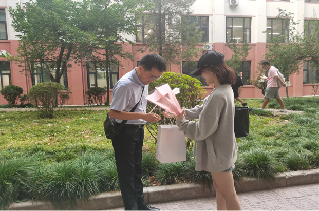 9月10日上午七点半,学生代表在为老师们送上鲜花,这不仅仅是对教师辛勤付出的肯定与感激,更是学生们内心深处对老师敬爱与怀念的深情表达。