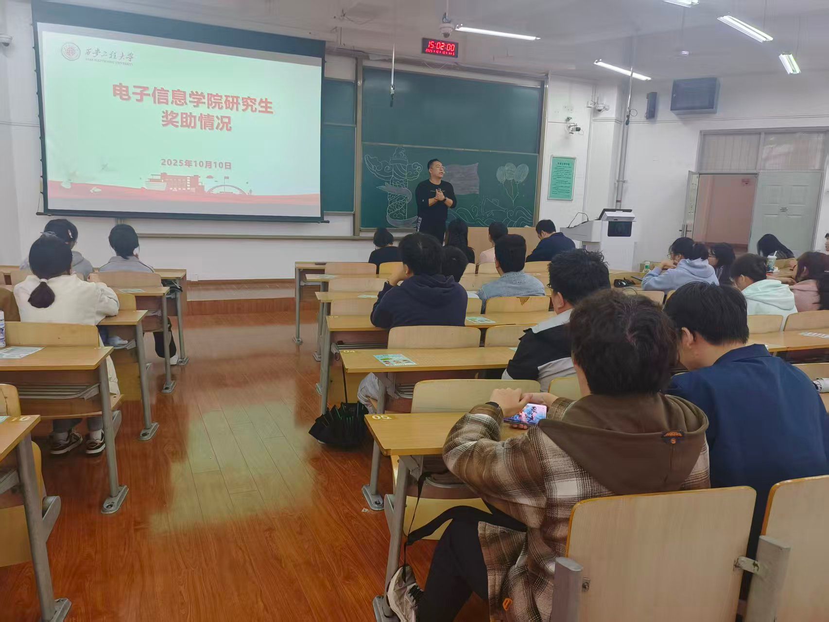 10月10日,电子信息学院在教学楼B-133召开2026届毕业生考研专场动员会,全力助推学子备战深造。学院副院长张蕾、党委副书记周晓惠、2022级辅导员黄木委及刘风萍、研究生辅导员周梦宇与200余名备考学生共同参会。会议由黄木委主持。