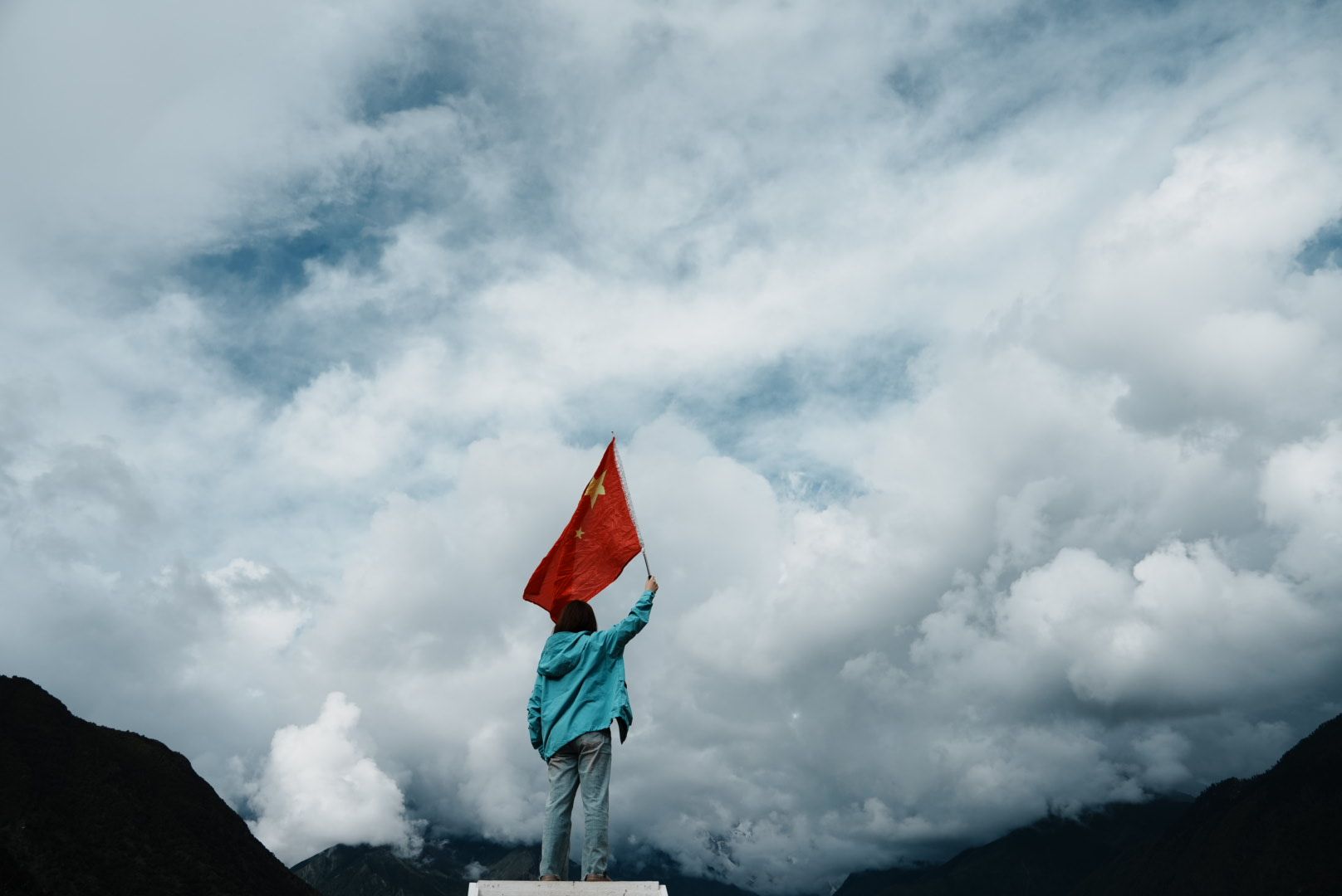 作品《国旗下》(图三)极具张力:画面中,一人立于山峦云海之间,高高举起五星红旗,国旗在天地间肆意飘扬,将个体与祖国山河同呼吸、共命运的壮志豪情,定格成震撼人心的画面,把个人的爱国情怀升华为与祖国共荣的坚定信念。