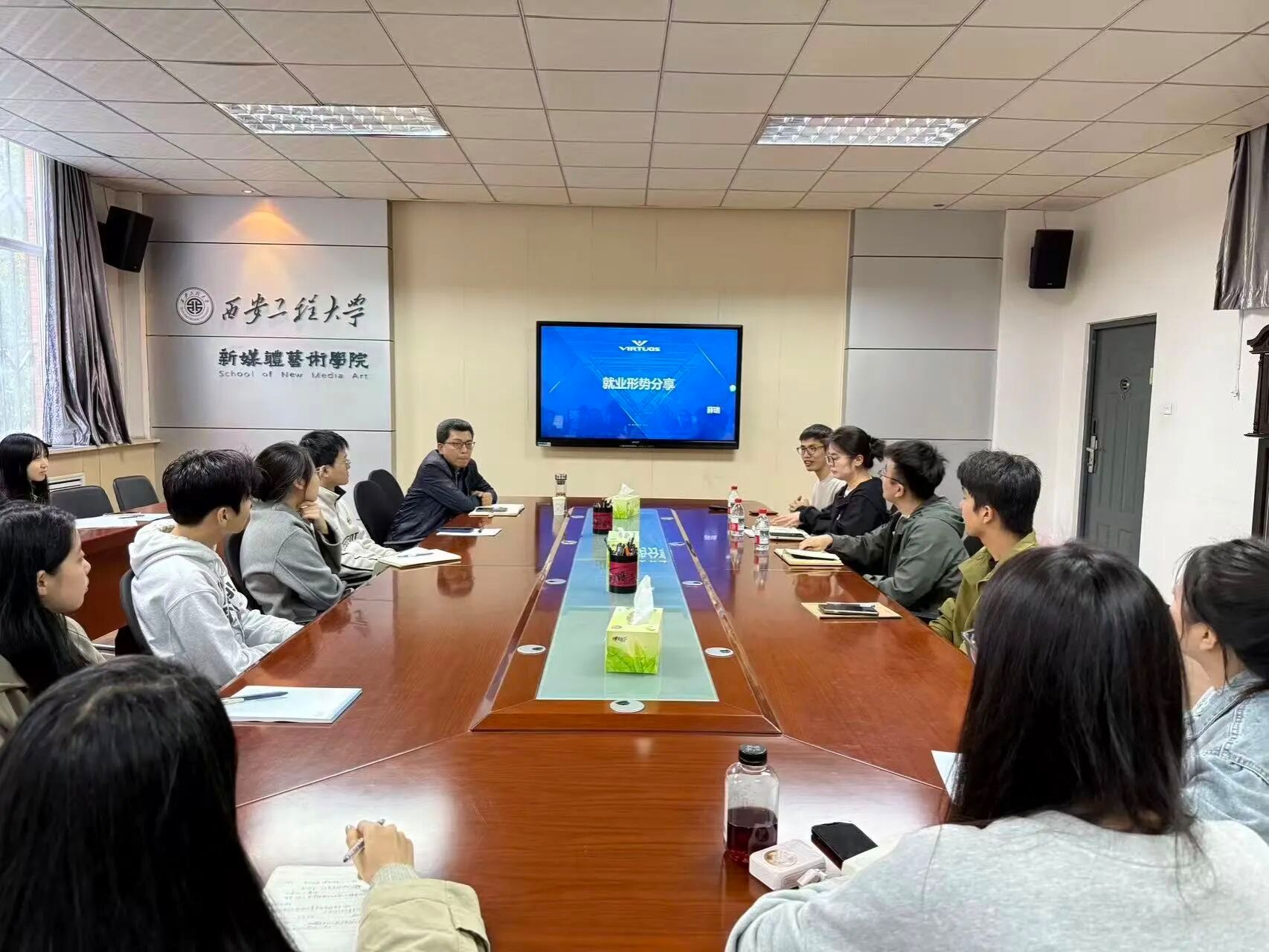 为扎实推进2026届毕业生就业服务工作,帮助学生准确把握就业形势、了解就业政策、树立科学的就业观与择业观,10月15日下午,新媒体艺术学院在8号教学楼326会议室组织召开本科毕业生就业动员会。学院党委副书记赵文熙、就业辅导员、毕业班辅导员及2026届毕业班班干部参加会议。会议特邀招生就业工作处高远老师、维塔士公司校园招聘经理薛瑞到场,为毕业生提供专业就业指导。