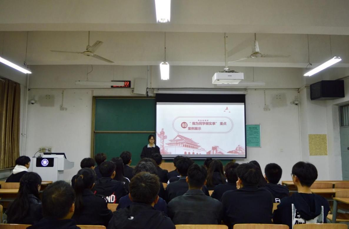 随后,在“我为同学做实事”案例展示环节,学生会权益部结合工作实际,汇报了近期服务同学的典型做法与成效,体现了学生会成员务实进取、服务同学的责任与担当。