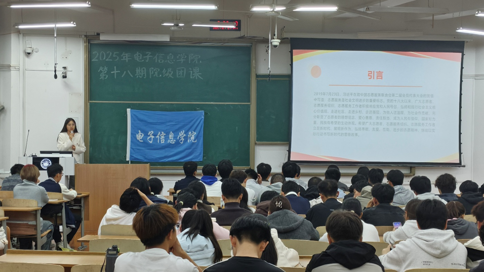 团课第四讲,胡颖以“志愿精神点燃红色爱国情”为主题,围绕青年志愿服务展开授课,为2025级新生阐明“奉献精神”如何通过志愿实践转化为爱国行动。她系统梳理中国青年志愿者活动的发展脉络——从20世纪50年代学雷锋活动起步,历经组织化、规范化探索,到近20年实现多层次、多领域的跨越式发展,让同学们清晰认识到志愿服务在社会文明进步中的重要价值。授课中,胡颖结合具体案例,详解大学生志愿服务的多元类型:无论是社区服务的民生关怀、关爱农民工子女的温暖行动,还是助残扶弱的公益实践、春运护航的志愿担当,亦或是守护生态的环保行动,都展现了青年参与社会建设的多样路径。她还明确志愿者的基本要求与义务,并介绍专项志愿服务项目的“综合赋能作用”——促进社区凝聚、促进教育公平、传播红色文化、助力乡村发展、推动环保实践等多方面为社会发展添力。她鼓励同学们结合自身实际,积极投身志愿实践,以“奉献、友爱、互助、进步”的志愿精神,将红色爱国情转化为服务他人、贡献社会的实际行动。