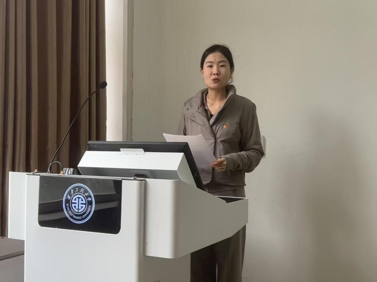 大会最后一项,学院团委副书记赵卓玥作会议总结讲话。赵卓玥表示,学院团委将一如既往地全力支持学生会依章程开展工作,并鼓励新一届学生会接续奋斗,团结带领全院同学,为学院的高质量发展贡献青春力量。同时从思想引领、服务同学、追求卓越三个维度对全体参会成员提出期望,希望同学们能够有远大理想、积极服务同学、不断奋斗,在西工程大的沃土上成长为可堪大用、能担重任的栋梁之材!