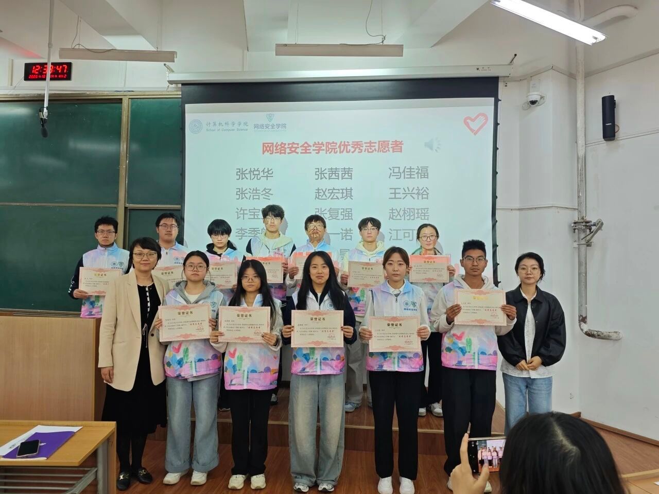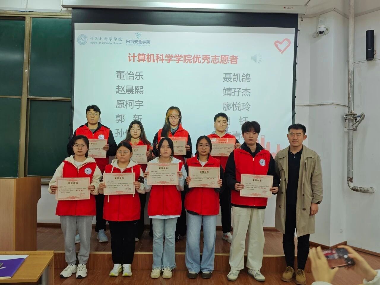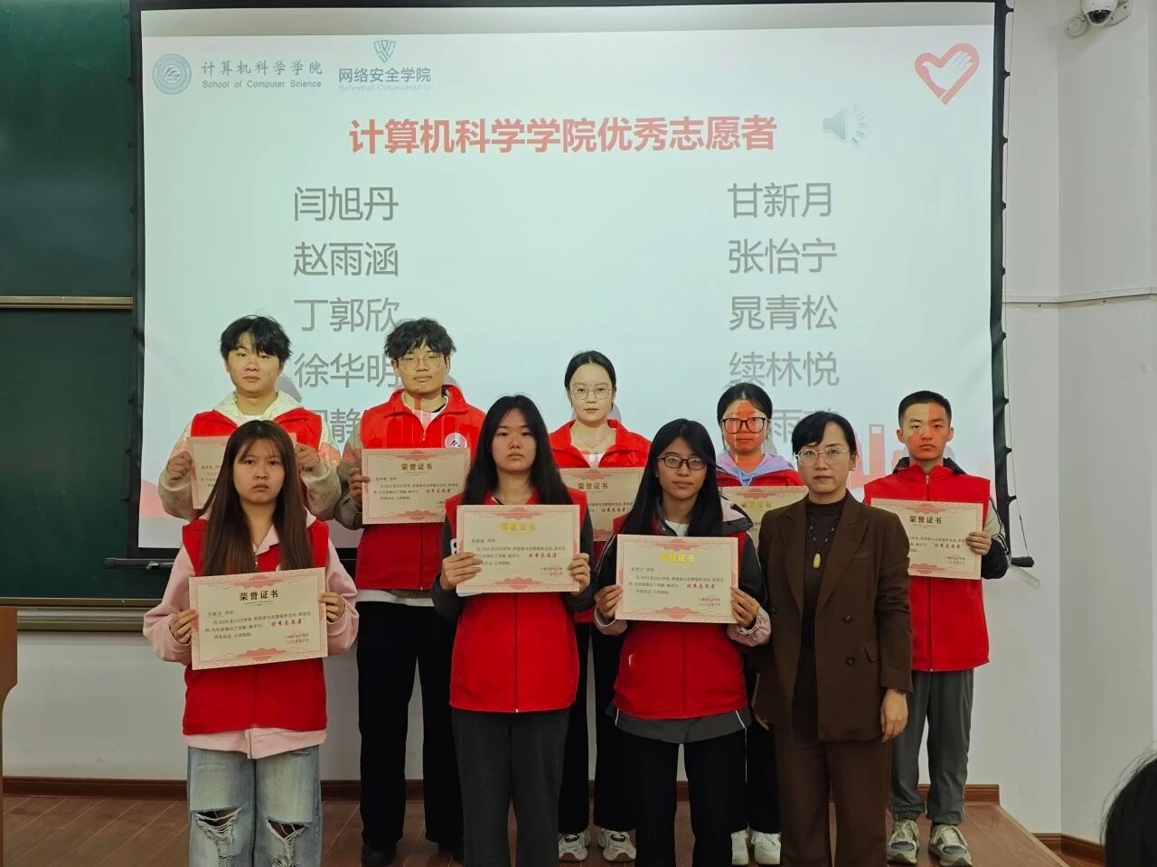 此次活动的成功举办,不仅表彰了先进、树立了榜样,更完成了志愿精神的接力传承,为两学院志愿服务工作注入了新的活力。下一步,计算机科学学院与网络安全学院将继续深化志愿服务体系建设,搭建更广阔的实践平台,引导更多青年学生从“我”的个体力量汇聚成“我们”的集体合力,让志愿精神在校园内外蔚然成风,为学校高质量发展和社会公益事业贡献更多青春智慧与力量。(撰稿:左温慧 审核:赵勇进、刘蓉)