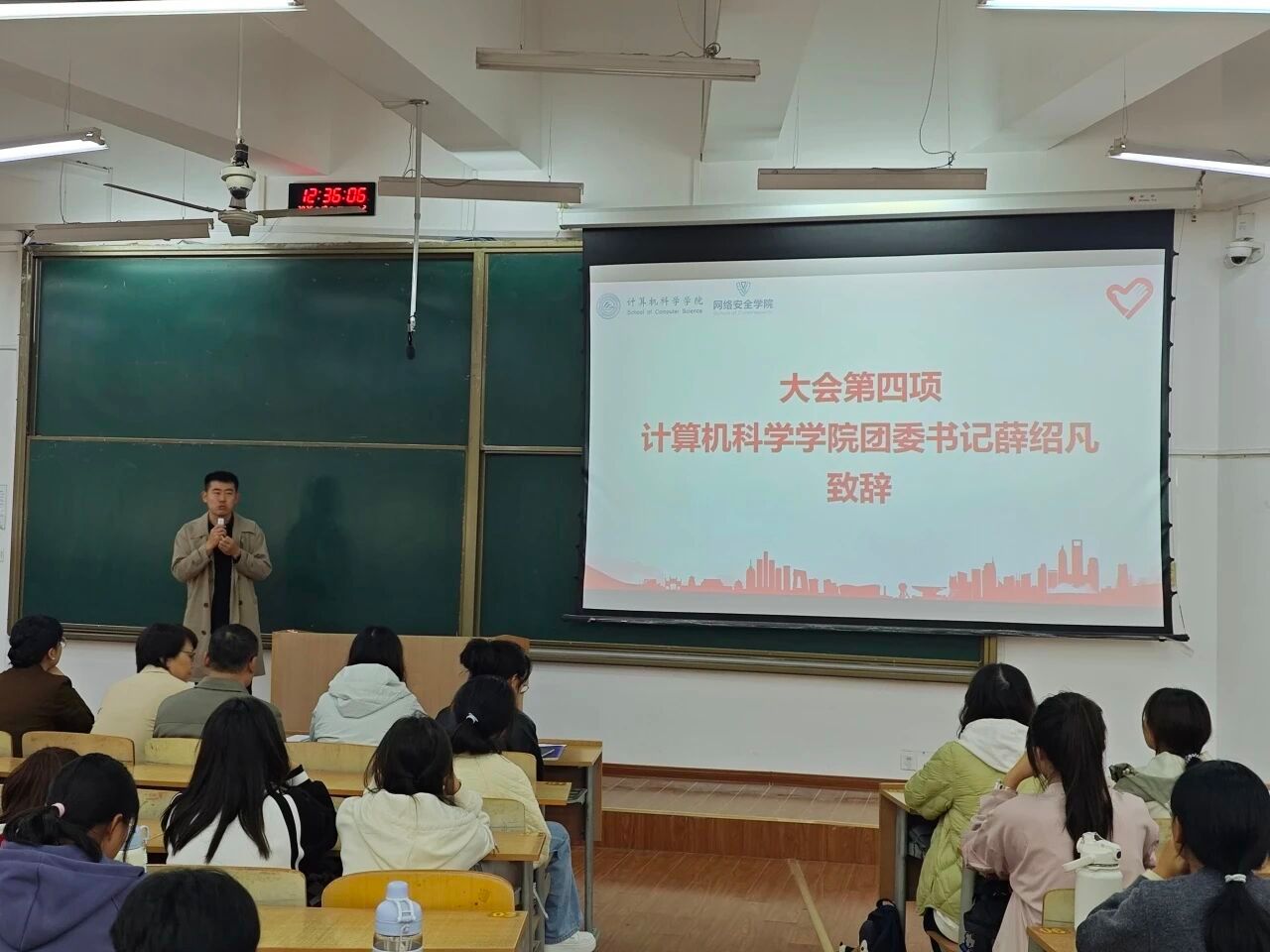 计算机学院团委书记薛绍凡在讲话中向获表彰的志愿者表示祝贺,向所有投身志愿服务的同学致以敬意。他指出,志愿服务是一项光荣的事业,更是青年成长的重要课堂,希望全体志愿者以此次活动为契机,进一步强化服务意识、提升服务能力,积极参与各类志愿服务活动,以实际行动为构建和谐校园、服务社会发展贡献青春力量。