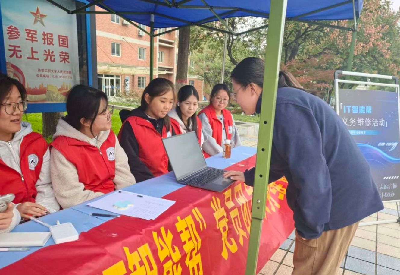 10月18日至19日,我校临潼校区中心广场暖意涌动——“计算机科学学院社区IT智能帮”党员团员义务维修服务队在此开启暖心公益服务。活动以“服务师生、实践育人”为核心,既通过IT设备维修展现学生在学生社区建设中的主体力量,更以“学以致用、以用促学”为路径,让志愿服务精神与雷锋精神交响融合,帮助学院青年志愿者在解难题、办实事中同步提升思想境界与综合能力。