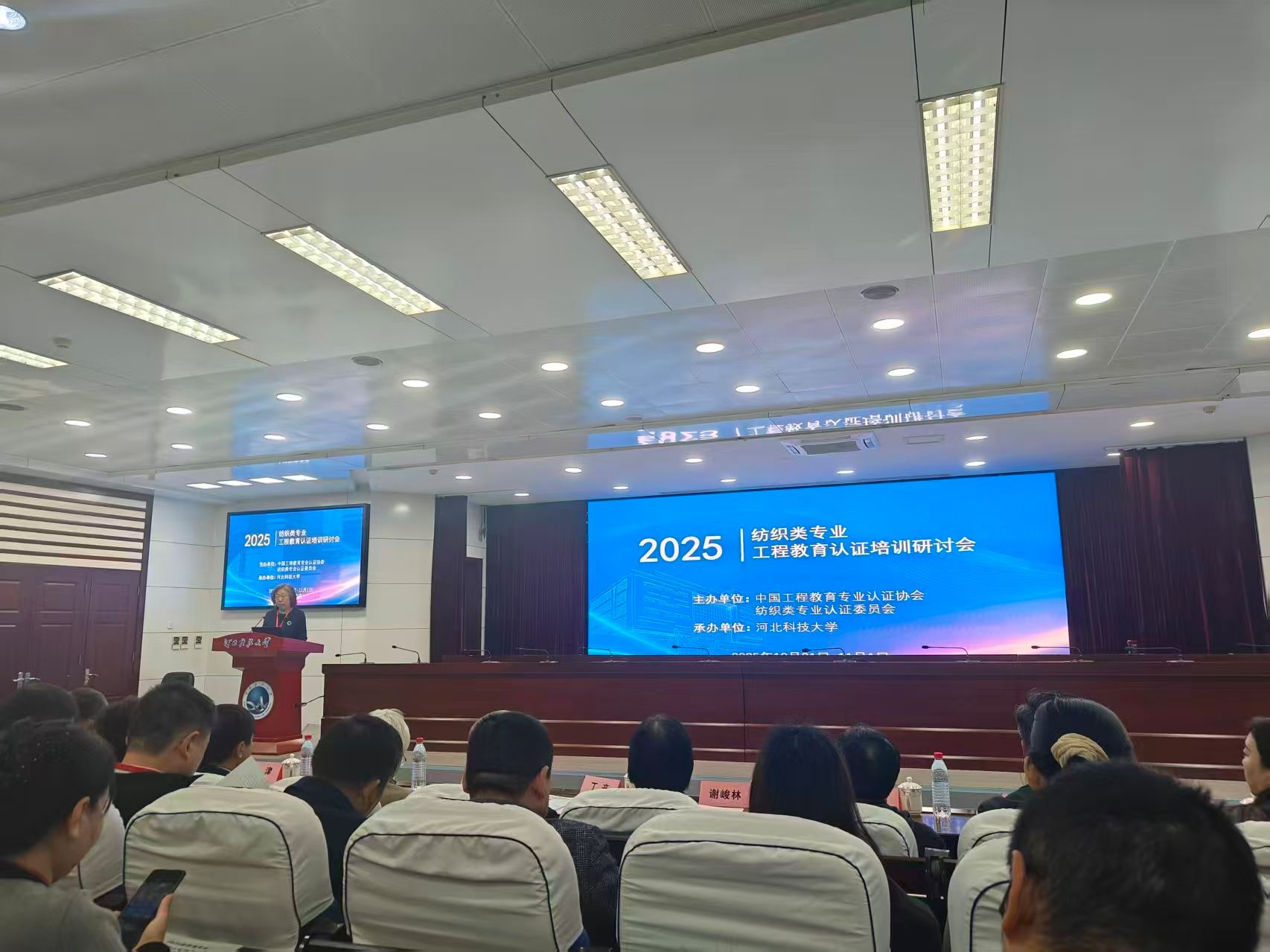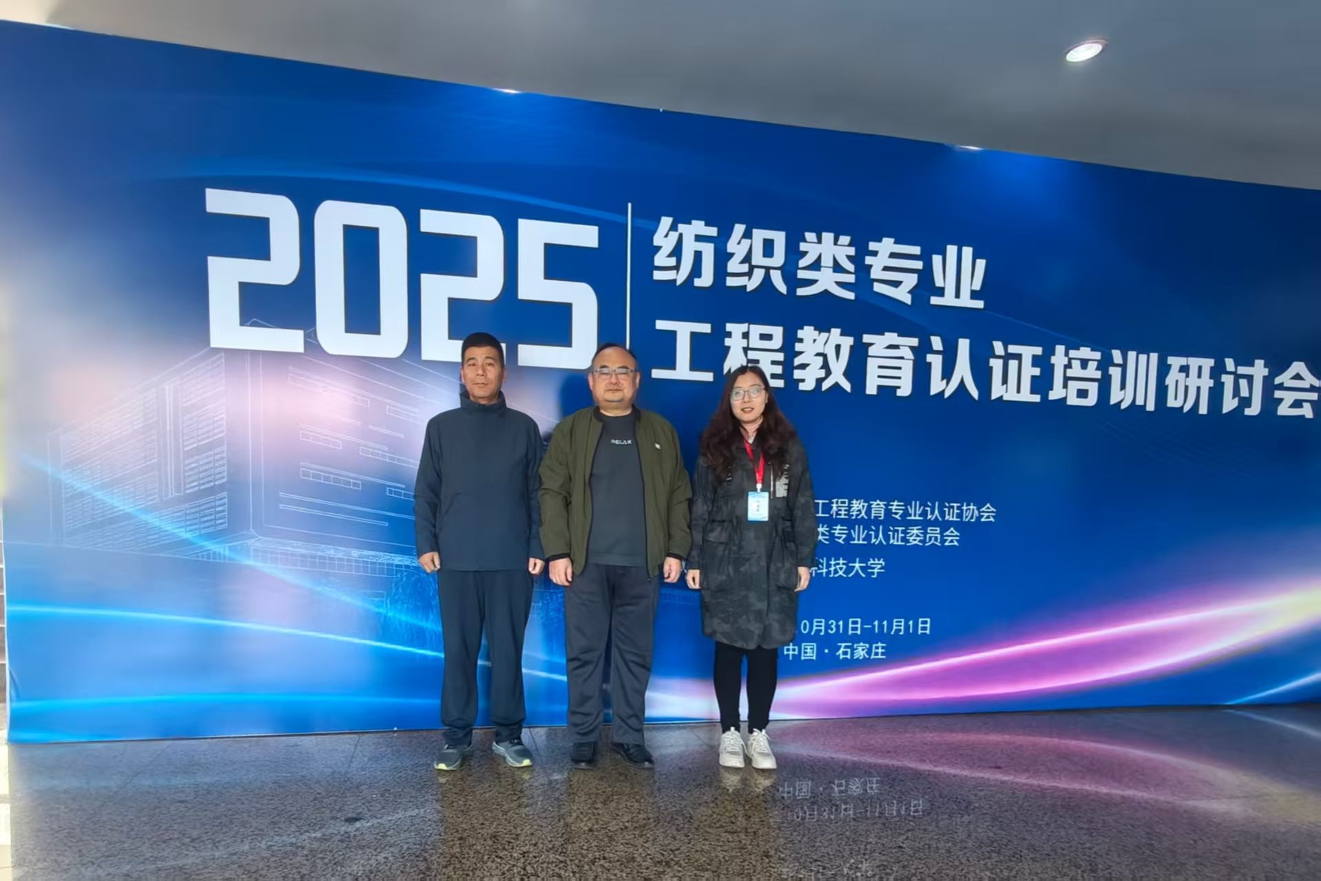 为深入贯彻工程教育认证理念,精准把握纺织类专业认证最新标准与实施要求,全面提升专业人才培养质量和认证工作规范化水平,10月31日至11月1日,西安工程大学纺织科学与工程学院副院长刘哲、张鹏飞及纺织材料系副主任范星宇赴石家庄参加了2025纺织类专业工程教育认证培训研讨会。本次研讨会聚焦工程教育认证标准解读、自评报告撰写、持续改进机制等核心议题,为纺织类专业工程教育认证工作提供专业指导,旨在提升纺织类专业人才培养质量与认证工作水平。