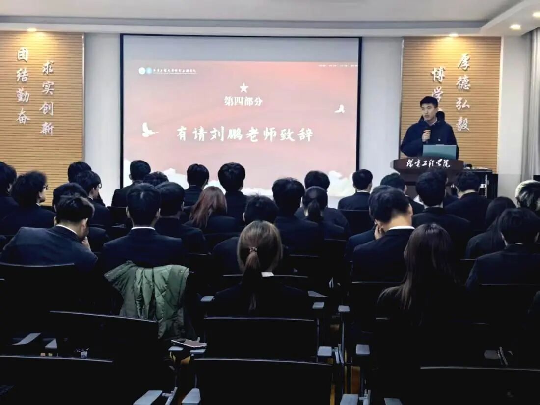 随后,学院团委书记刘鹏致辞,他首先对往届学生会在学业帮扶、实践育人、校园文化建设等方面的工作予以高度肯定,尤其是“梦桃式”小课堂、篮球赛等特色活动,切实服务了同学成长。同时,他也指出工作中存在的不足,并对新一届学生会主席团提出四点要求:坚定理想信念,把准政治方向;牢记服务宗旨,密切联系同学;强化责任担当,提升工作能力;严守纪律规矩,树立良好形象。