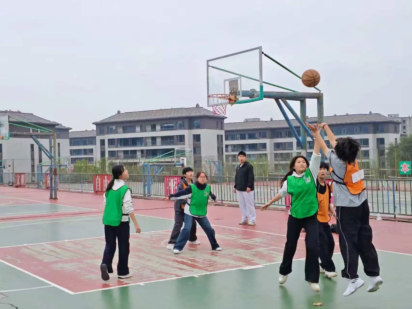赛场上,球员们配合默契,时而严密防守阻断进攻,时而灵活跑位寻找投篮机会,运球时的灵活变向、传球时的精准到位、投篮时的果断出手,每一个动作都展现着扎实的技术功底。场边观众挥舞着班级旗帜,呐喊声、加油声此起彼伏,不少同学自发组成“啦啦队”,用口号与掌声为球员们注入力量。