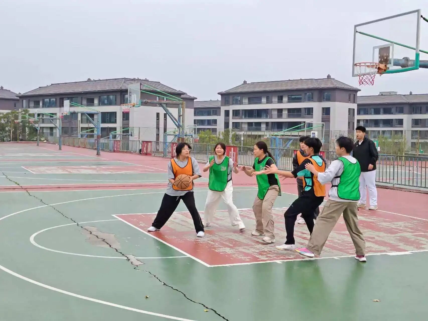 女子队这边比赛依旧激烈,红队前锋一个利落转身,闪过防守队员,双手持球跃起,篮球在空中划出完美弧线,稳稳入网。蓝队不甘示弱,后卫断球后迅速发起反击,传球、掩护、上篮一气呵成,比分紧咬。场边欢呼声此起彼伏,每一次攻防都彰显着她们的力量与默契,尽显赛场风采。