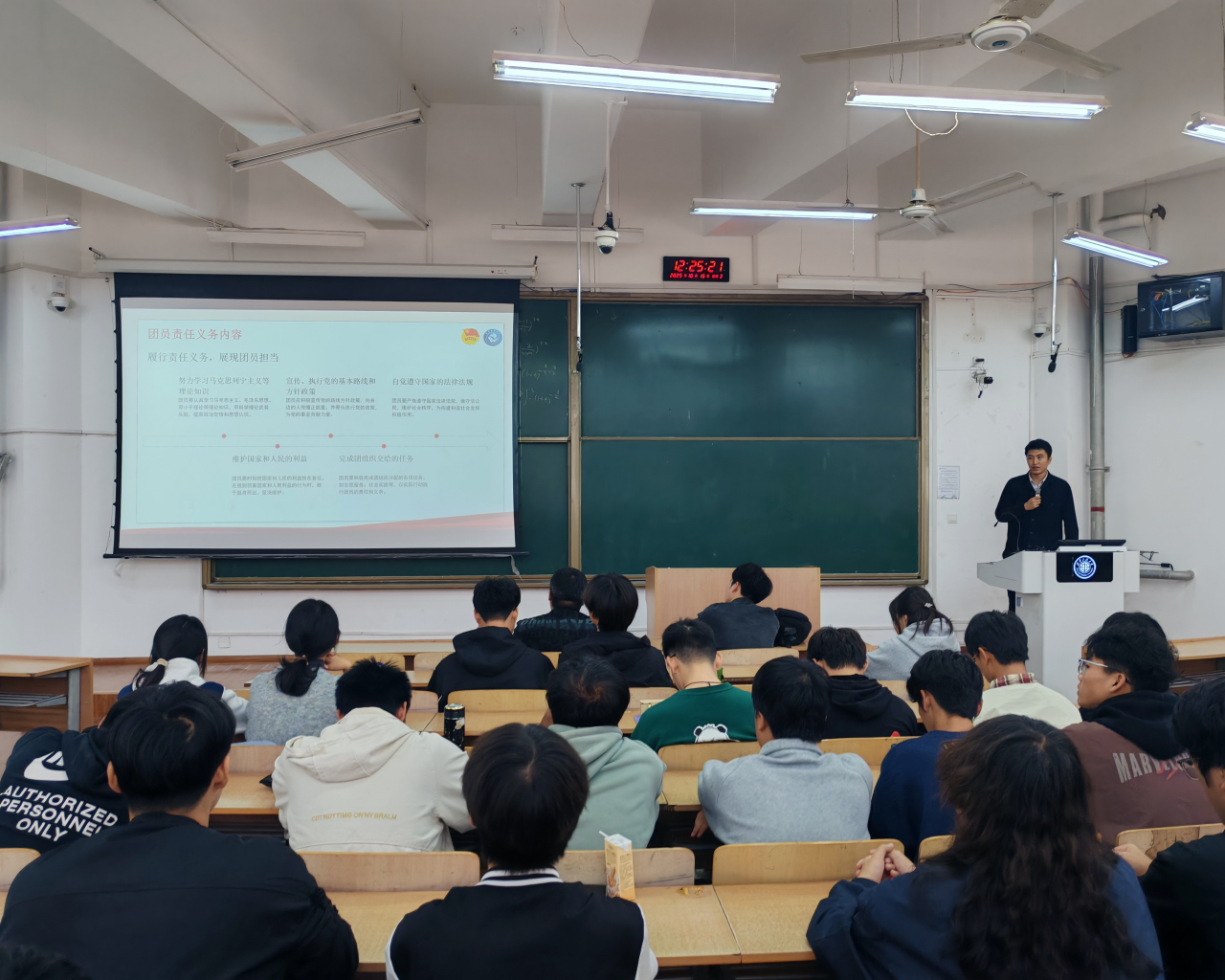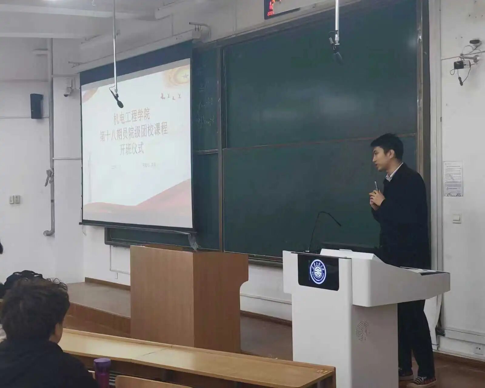 为深入学习贯彻习近平新时代中国特色社会主义思想,落实习近平总书记关于青年工作的重要思想,全面深化从严治团,切实提升团员青年的思想政治素养与责任担当意识,10月15日,机电工程学院精心组织开展2025年度院级团校系列培训活动。学院团委书记刘鹏、团委副书记李菁菁全程参与并主讲系列团课,为全院团员骨干与入团积极分子带来了一场兼具理论深度与实践温度的思想盛宴。