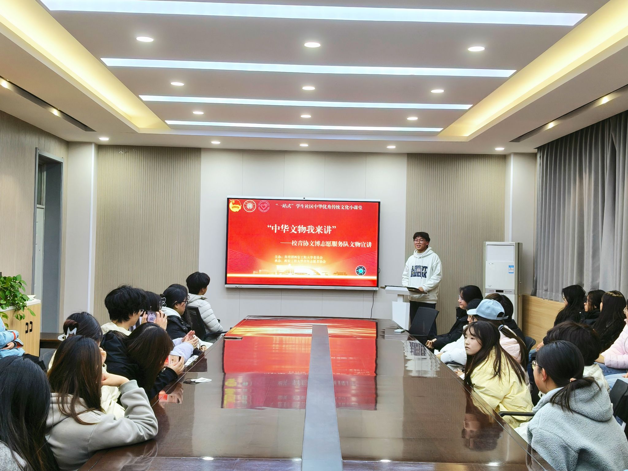 活动由人文社会科学学院青年志愿者分会主席团成员梁伦雨主持。他在开场致辞中对到场同学表示热烈欢迎,详细阐释了“中华文物我来讲”系列活动的宗旨,清晰点明了本次宣讲“以文物为媒、传文化之魂”的核心主题。