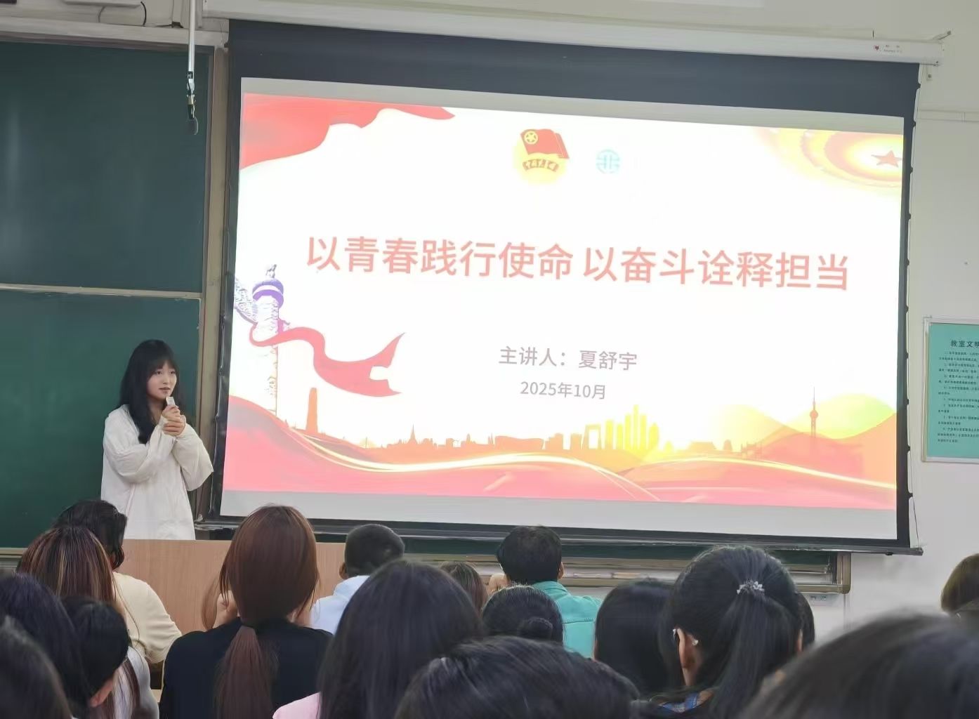 后续团课中,团委书记刘杨扬以《学习基础团务知识,增强共青团员意识》为主题,深度剖析团员权利与义务,全面讲解团员发展程序、推优入党程序及“三会两制一课”等。课程内容系统全面,旨在夯实学员的团务理论基础,强化其作为共青团员的光荣感与责任感。人文学院团支部书记代表夏舒宇围绕《以青春践行使命,以奋斗诠释担当》这一主题,激励广大青年将个人发展融入国家与集体的事业之中,以奋斗姿态践行青春使命。10月12日晚,本期团课培训在严谨有序的结业考试中顺利结束。