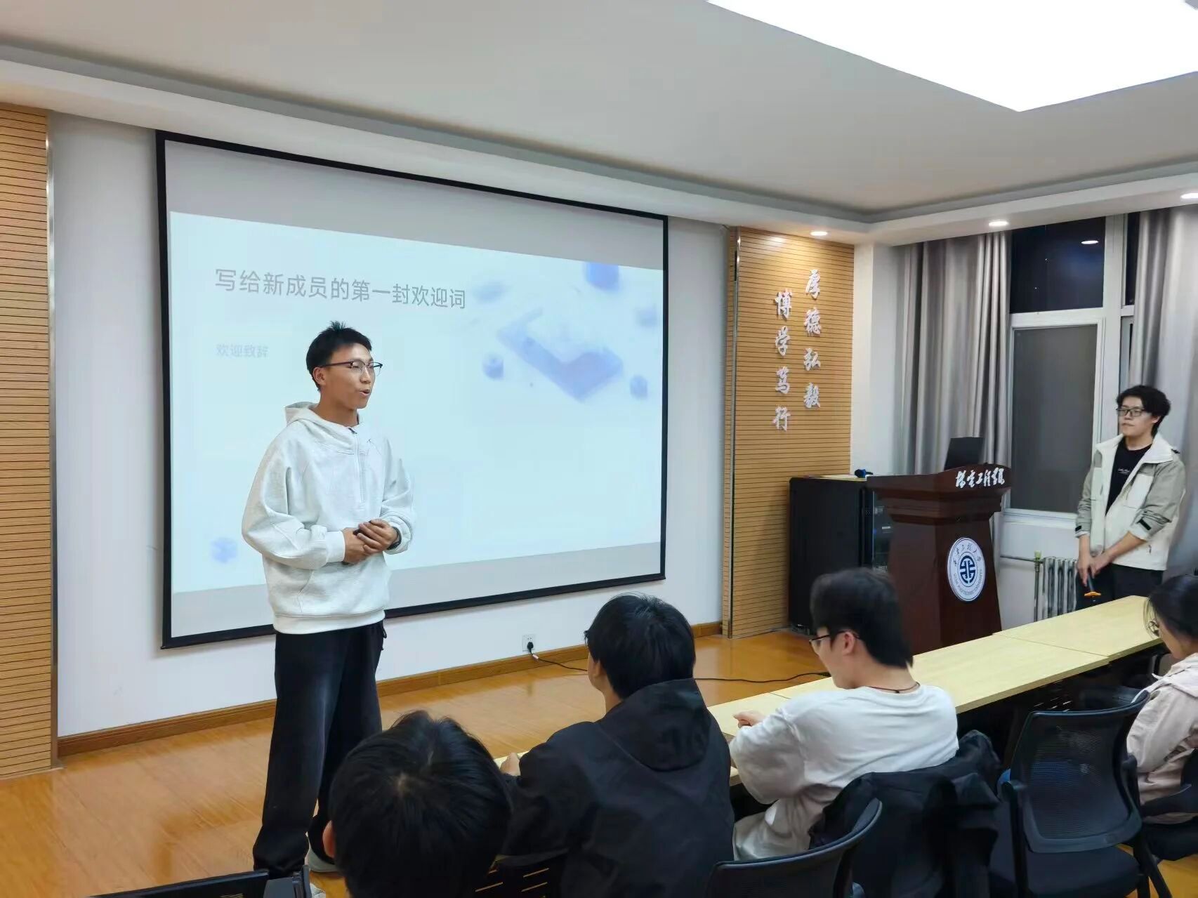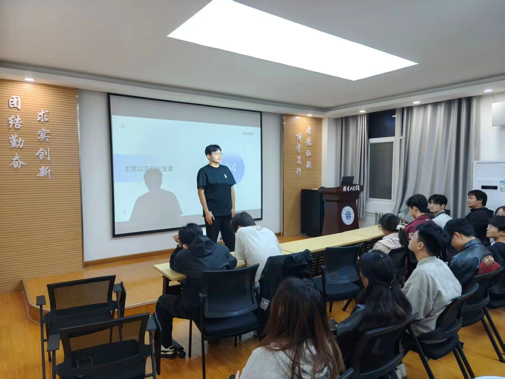 本次会议由运营部部长王悦衡主持,在欢迎新力量加入的同时,阐明会议核心目的——厘清新学期工作目标、推动各部门高效协作。会上,首先明确了新媒体中心作为学院宣传主阵地,核心职能包括内容创作、排版设计、海报制作等,帮助干事们快速了解部门;随后,新媒体中心干事们结合个人特长依次发言,主席团及各部长则重点围绕学业与工作平衡、部门协作机制、新学期技能培训安排等内容展开分享。此外,会议还通过图文回顾了微信公众号、抖音号往期的工作成果,现场围绕多类话题积极互动,思想碰撞间进一步凝聚了团队共识。