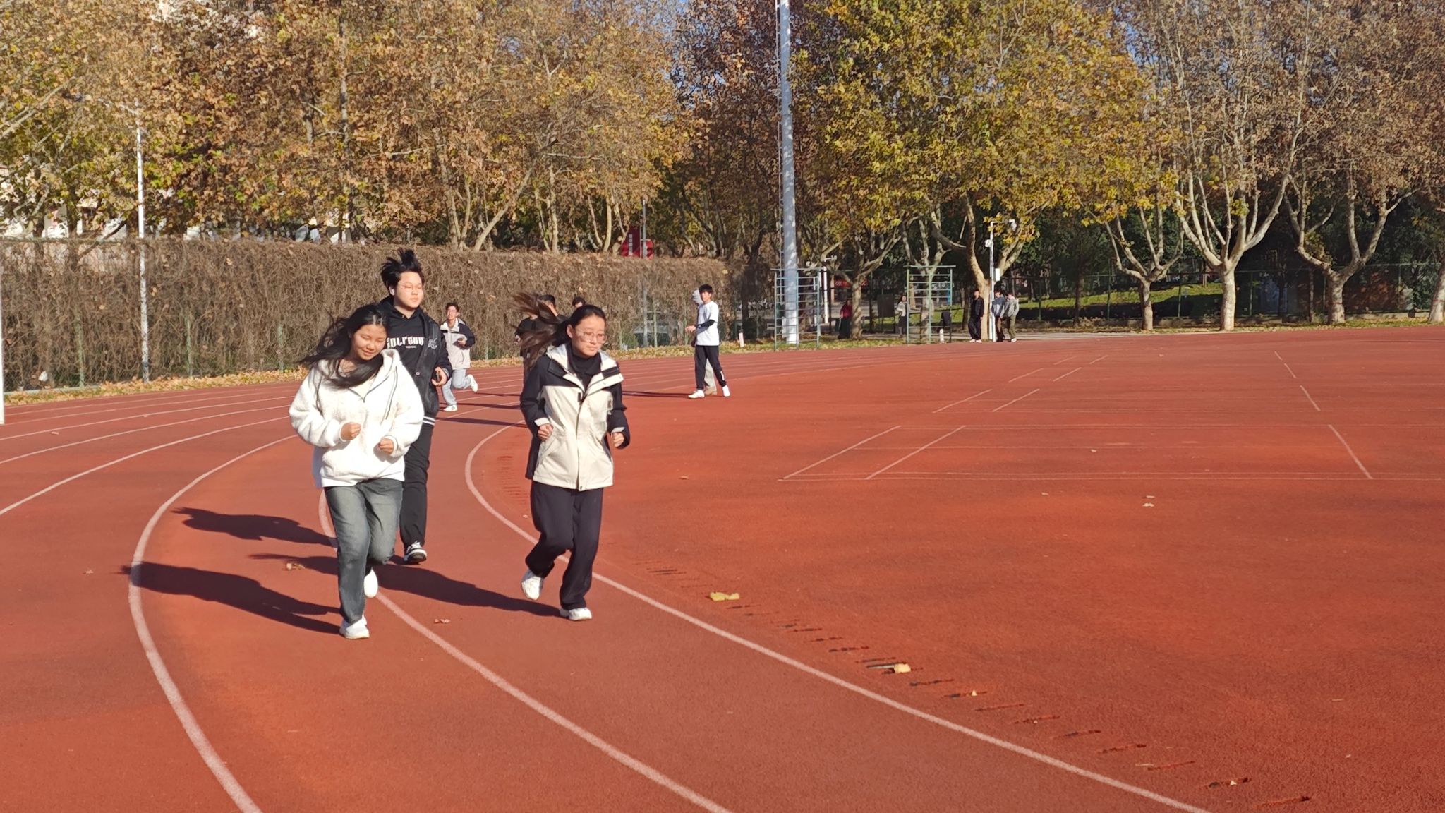 随着活动启动,冬日暖阳洒满操场,参与学生们精神抖擞、斗志昂扬,纷纷迈着矫健的步伐向前奔跑,奔跑身影在操场交织穿梭,勾勒出一幅活力满满的青春图景。过程中,学生们相互鼓劲、彼此陪伴,既有独自坚持奔跑的专注,也有结伴同行的欢声笑语,充分展现出纺织学院学生积极向上、奋勇拼搏的青春风貌,为沉静的冬日校园注入满满活力。