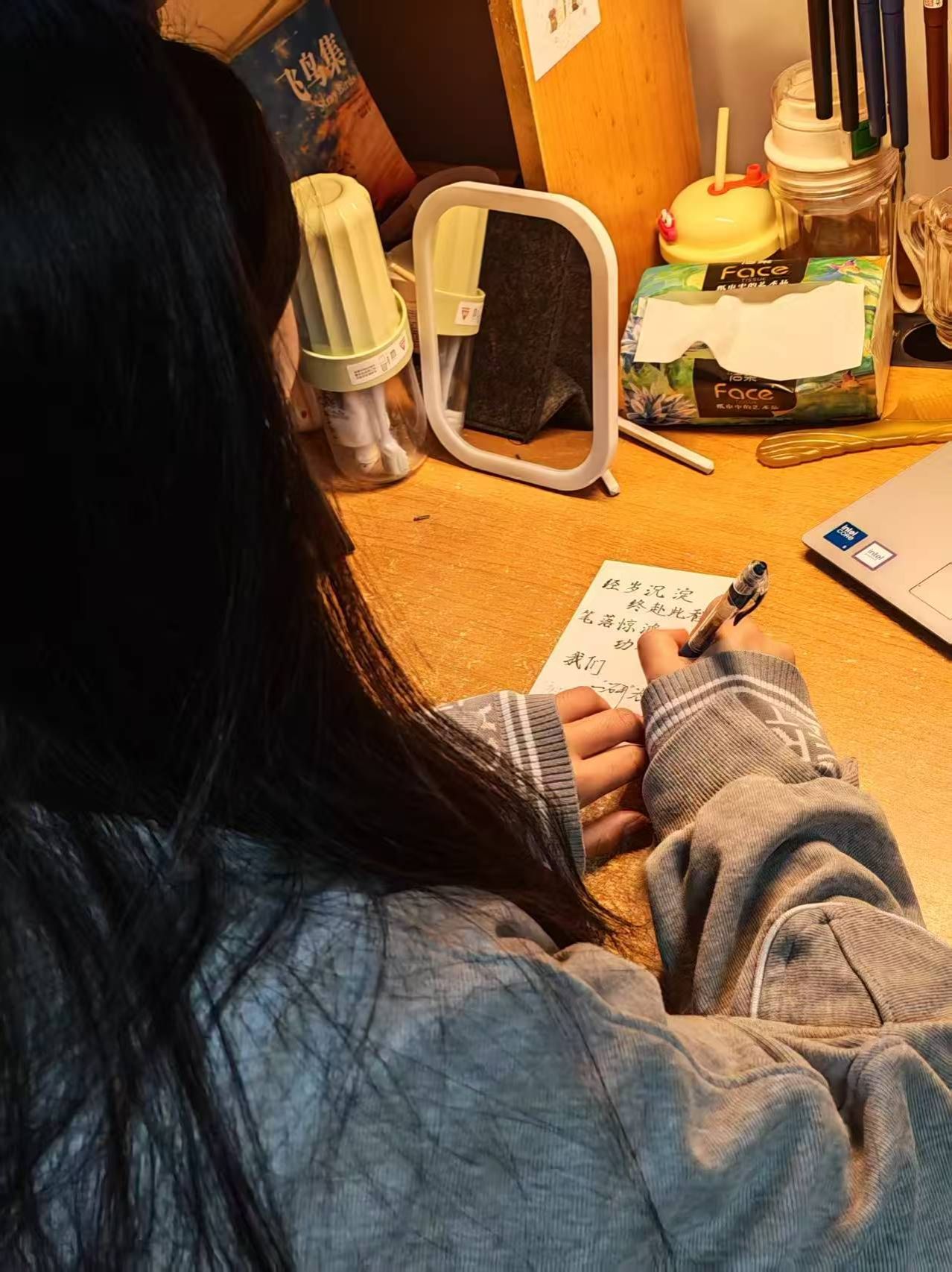 活动以手写明信片为载体,设置“专属祝福·精准传递”与“一语双关·祝福+约定”等环节,鼓励同学们为考研学长学姐书写真挚寄语。现场准备了200张明信片及书写工具,同学们可选择为指定对象书写专属祝福,或撰写通用祝福投入“共享祝福箱”。由团委负责同学后续随机送达考研学子手中,让考研学子在备考不同阶段收获惊喜与鼓励。活动现场井然有序,同学们踊跃参与,笔尖流淌的真诚话语凝聚成对考研学子的深切勉励与美好祝愿。