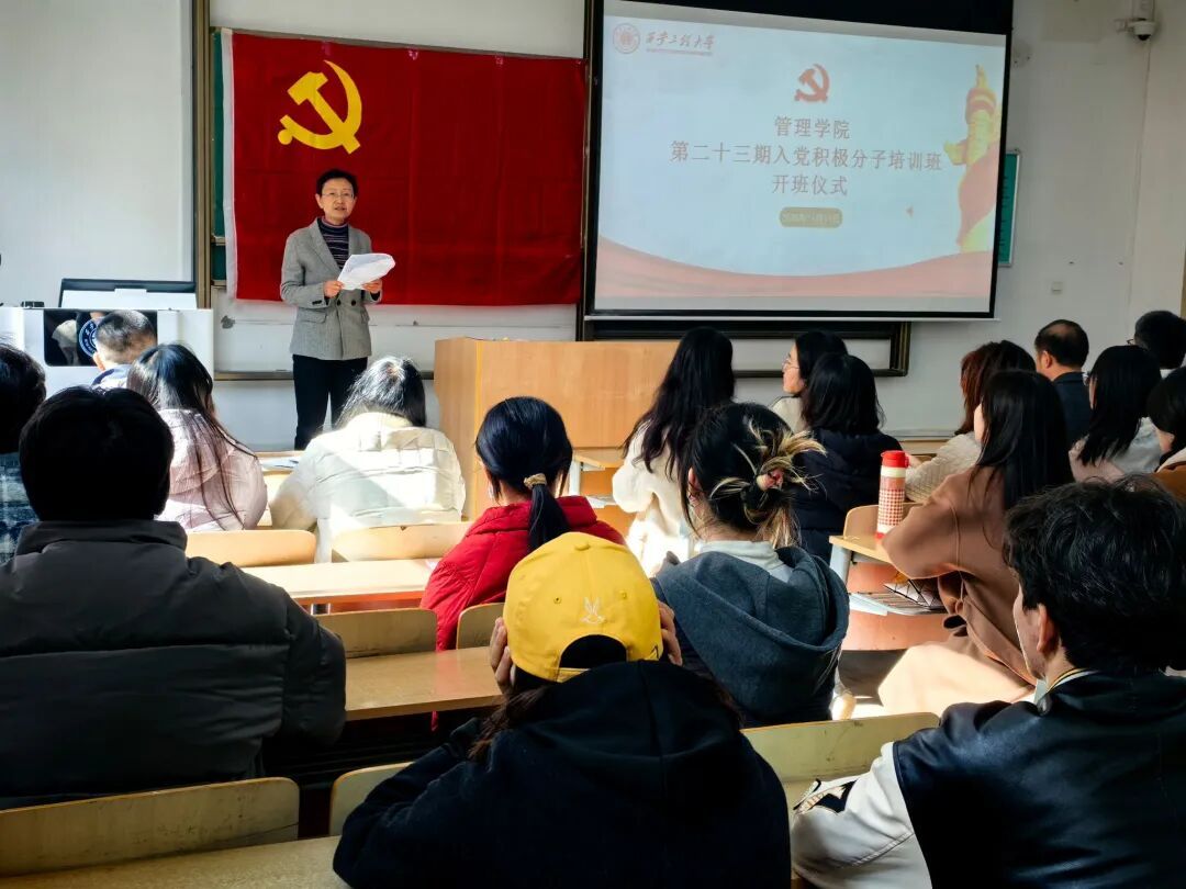 11月11日中午,管理学院在临潼校区A-126教室举行第二十三期入党积极分子培训班开班仪式。院党委书记王爱华、院党委副书记代锴、各学生党支部书记以及51名入党积极分子参会。
