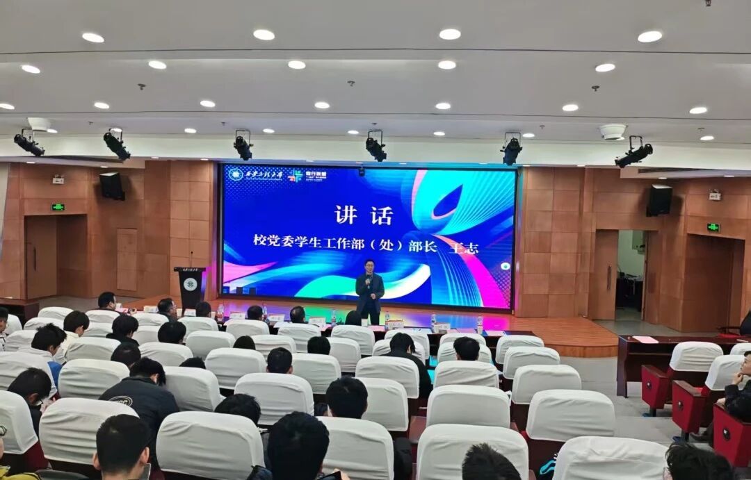 11月20日,由机电工程学院与计算机科学学院联合举办的“智造新程 码动人生”大学生职业生涯规划大赛在临潼校区图书馆一楼报告厅举行。学生工作部(处)部长王志、招生就业工作处处长付刚、机电工程学院党委书记阚佩、指导教师和辅导员及学生代表近200人参加了本次活动。大赛特邀鸿蒙信创技术有限公司总经理白三庆、西安午后生活品牌运营管理有限公司总经理秦天、校团委副书记凌旭、学工部教育管理科科长付成程担任评委。活动由计算机科学学院党委副书记赵勇进主持。