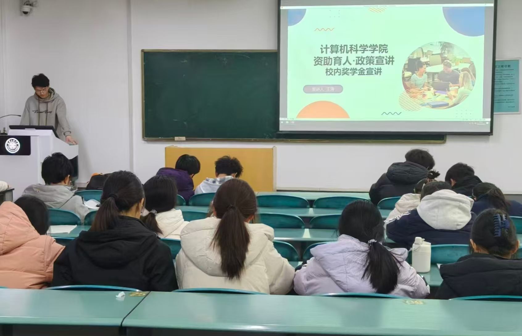 为确保校内奖学金政策的精准传达和实施,激励学生勤奋学习、积极进取,计算机科学学院于10月29日举办了校内奖学金政策宣讲会。由学院资助宣传大使主讲,各年级班长参与。