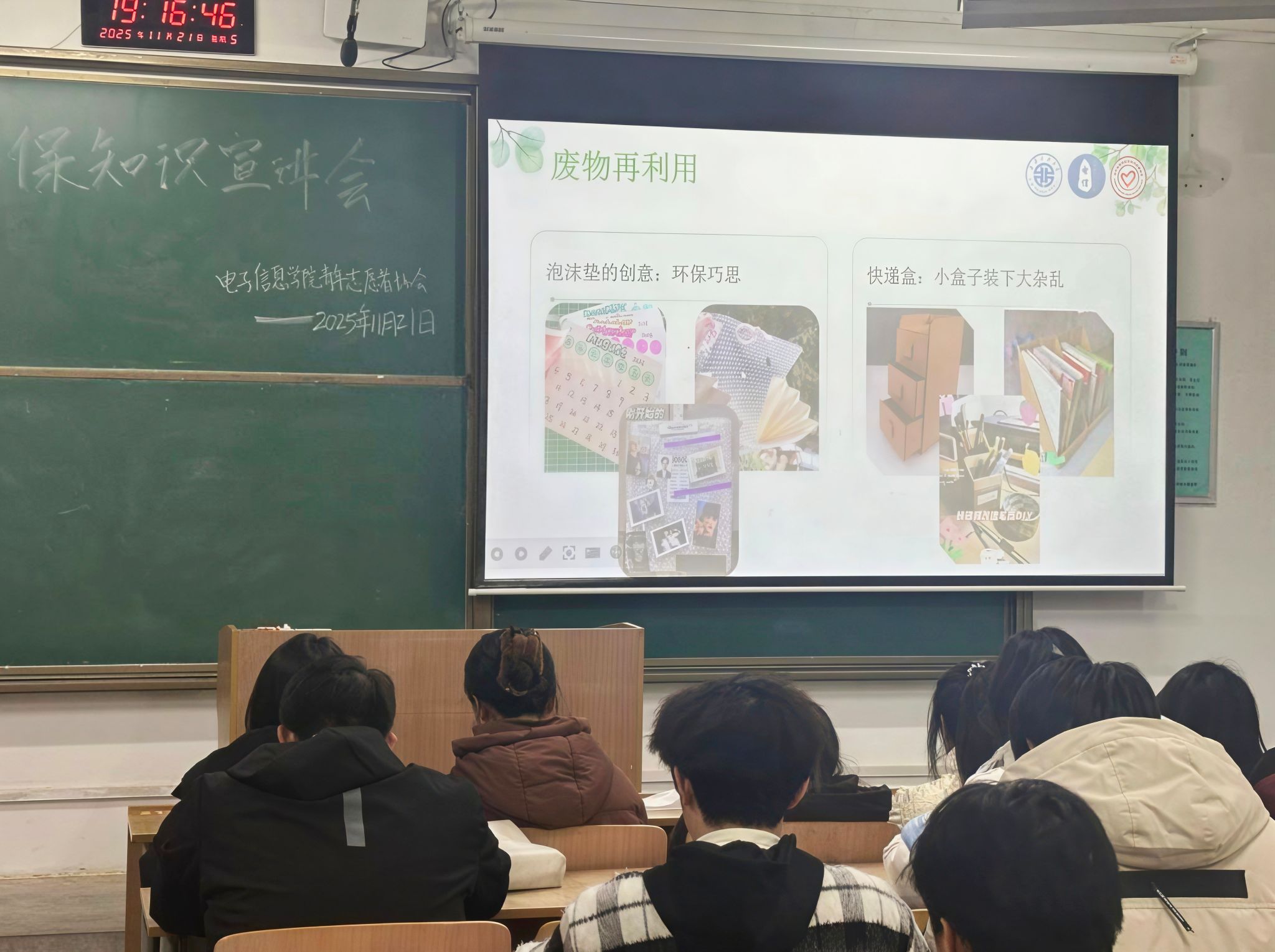 此次环保知识讲座的举办,不仅为同学们提供了学习环保知识、交流环保经验的平台,更有效强化了大家的生态环保意识,推动绿色理念在校园内进一步传播。未来,电子信息学院青年志愿者协会将继续围绕环保主题开展更多形式多样的活动,带动更多人参与到环保行动中,共同为筑建绿色校园贡献力量。