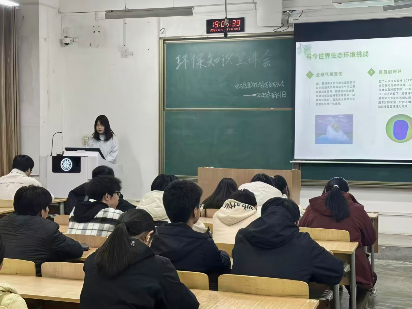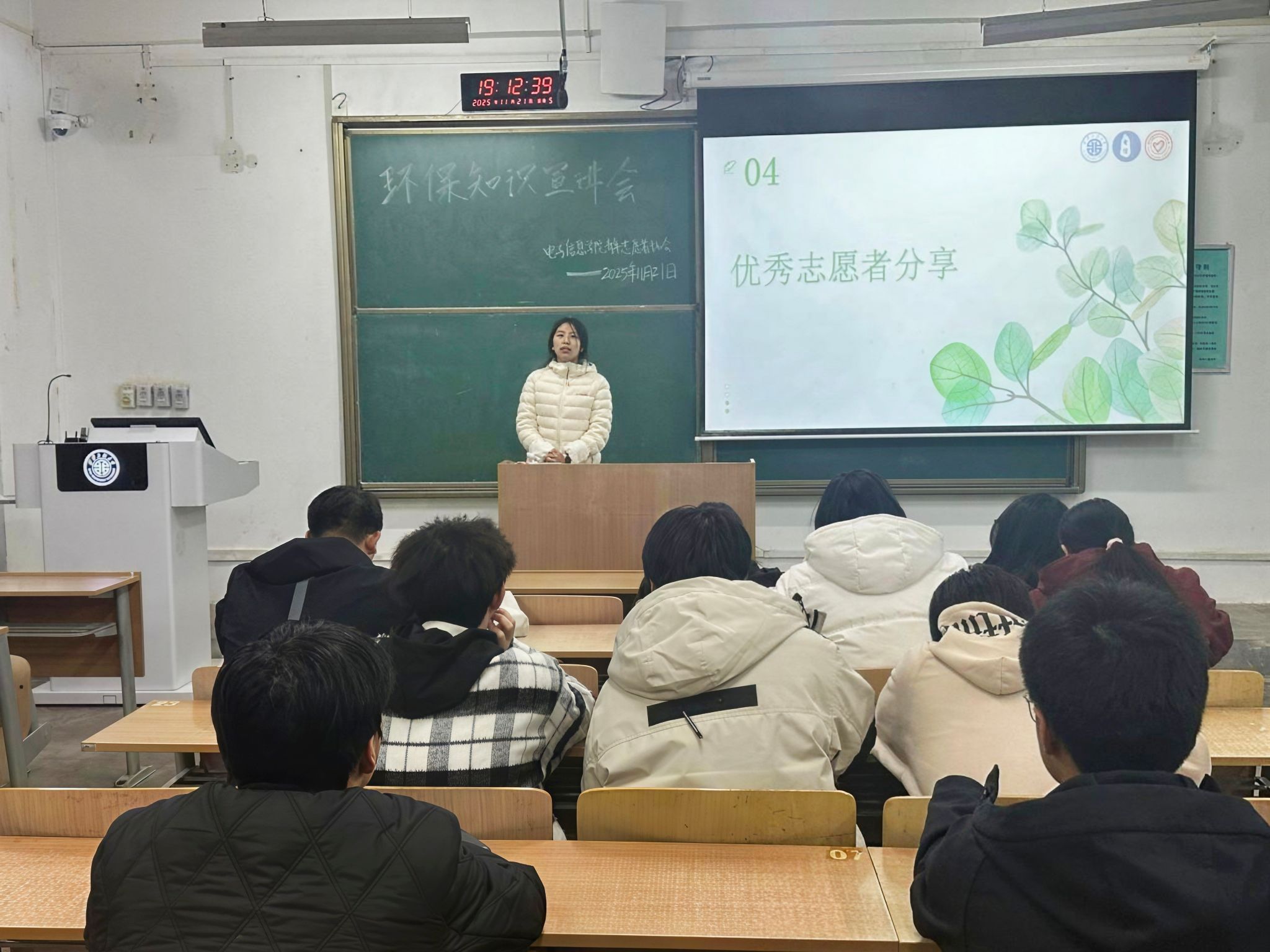 活动伊始,电子信息工程2504班的于欣奕作为主持人,简要介绍了本次讲座的背景与目的。当前全球生态环境面临诸多挑战,学院青年志愿者协会希望通过本次活动搭建环保知识传播平台,让大家清晰认知环境现状、掌握实用环保技能,进而主动投身绿色行动,助力生态保护。