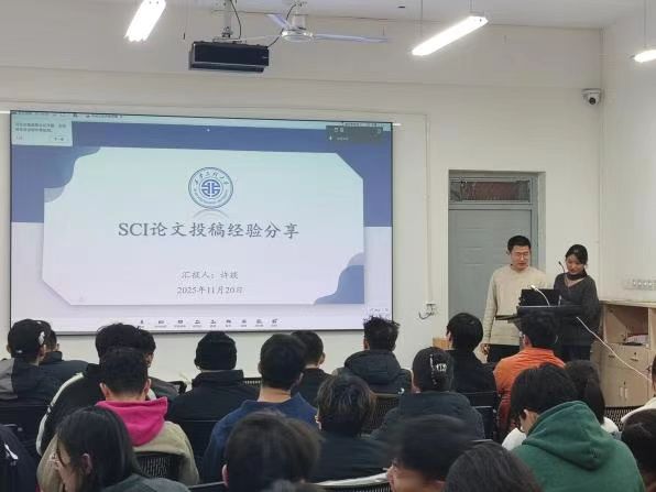 活动中,刘帅磊同学分享了宝贵的个人职业规划和考博经历,还就如何选择研究方向、准备学术论文、联系导师、备考面试技巧等关键环节进行了细致入微的讲解与建议,让同学们深入了解考博流程与策略,为未来的博士申请及职业路径选择铺设了坚实基础。许燚同学结合自己的亲身经历,详细而生动地为同学们分享了自己硕士期间的学习方法、学术论文撰写心得和学科竞赛经历,让同学们对学科竞赛和SCI论文撰写有了更深入的了解,激励同学们积极规划未来学术道路。在互动环节,同学们积极提问,就竞赛准备、论文写作技巧、科研思路等问题与分享嘉宾进行了热烈的交流。