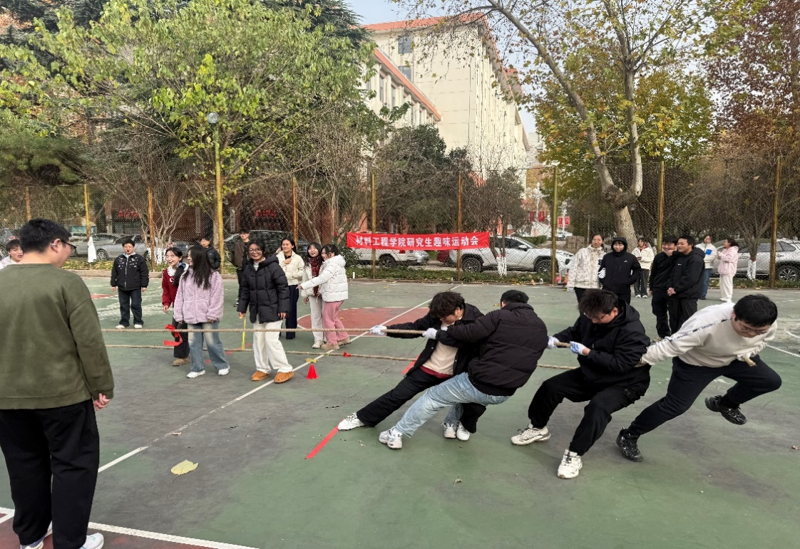 11月26日下午,金花校区篮球场热闹非凡,由材料工程学院研究生会主办的 2025 年研究生冬季趣味运动会在此顺利举行。百余名研究生暂时放下科研任务,走进赛场享受运动乐趣,为冬日校园注入鲜活活力。