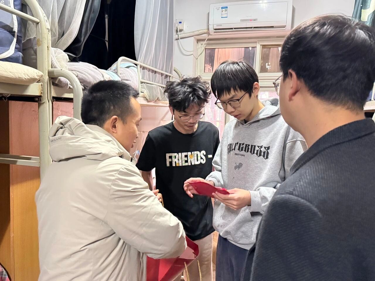 12月11日,机电工程学院党政领导、“三全育人”导师及全体辅导员深入“一站式”学生社区,开展“情系学子,暖心祝福”活动,为考研学子送上关怀与鼓励。