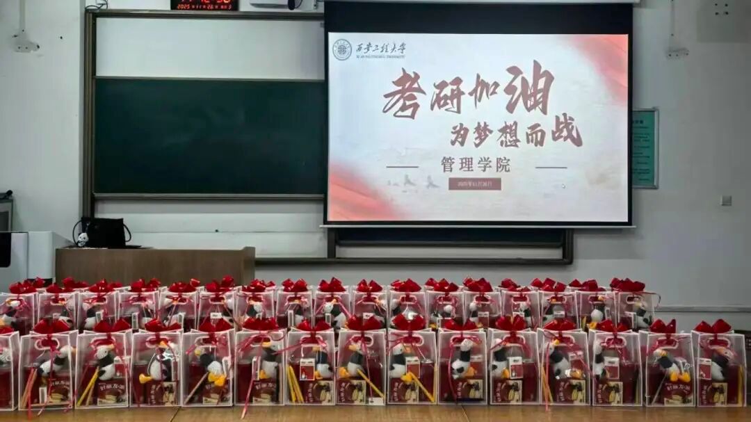11月26日,管理学院在临潼校区A-128举办了一场温暖而励志的考研慰问活动,为正在紧张备战考研的学子们送上学院的关怀与真挚祝福。院长张克英、院党委副书记代锴、教师代表、辅导员及全体考研同学共同参与了本次活动。
