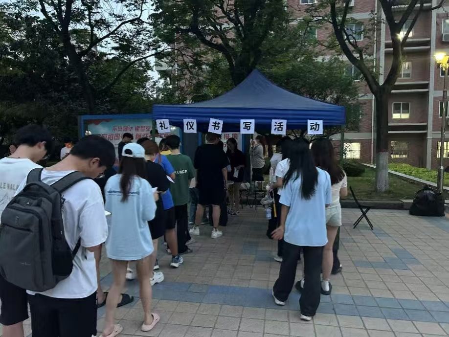 为引导大学生关注校园生活中的文明礼仪细节,传承中华传统美德,打造文明和谐的校园环境,电子信息学院大学生礼仪社团于4 月 18 日晚 7 时,在中心广场开展 “书写礼仪小事,传递文明大爱”主题书写活动。