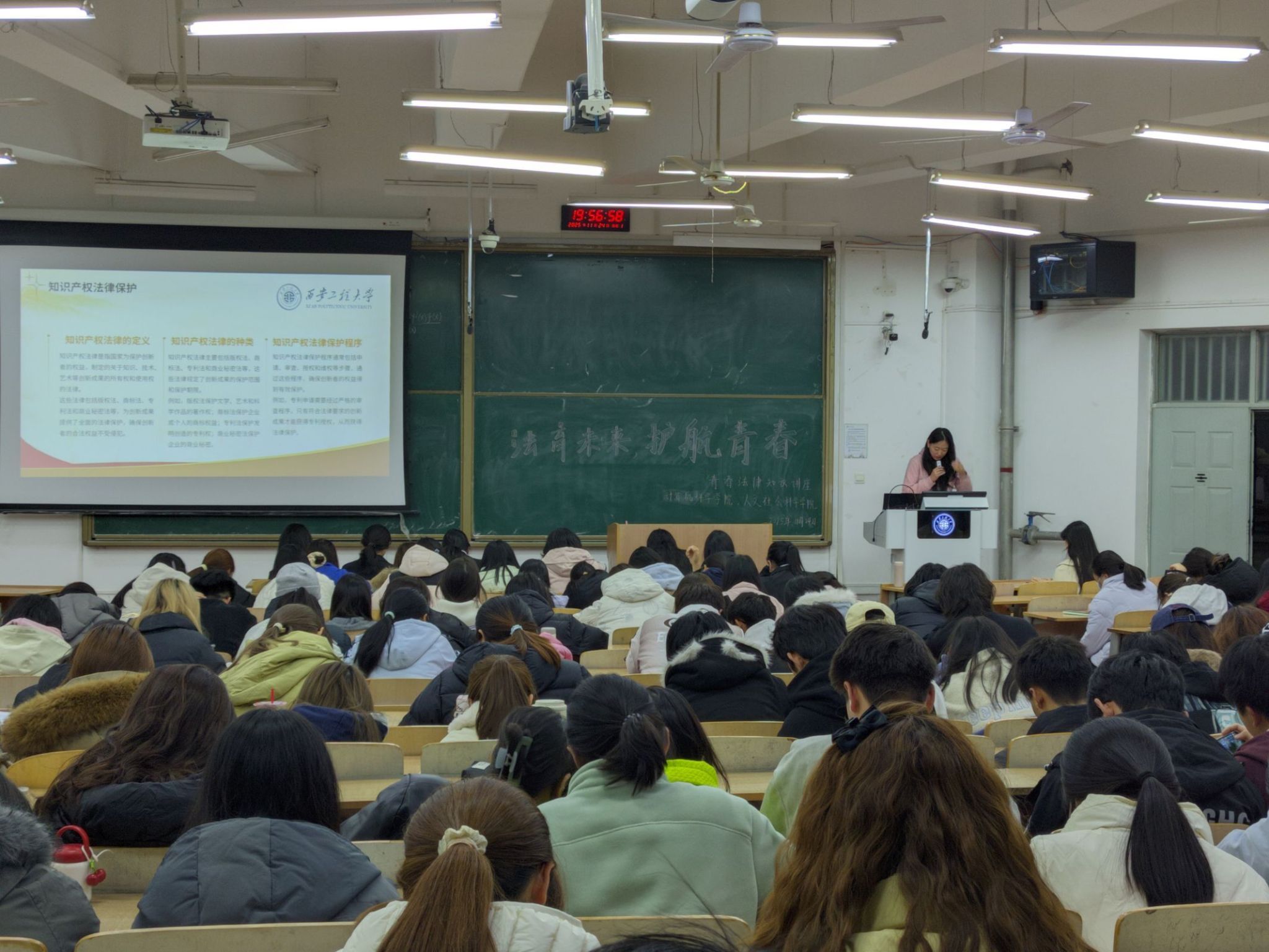 法治是青春成长的重要保障,校园是法治教育的关键阵地。为深入推进法治教育进校园,强化青年学子法治素养,11月25日,人文学院与计算机学院在临潼校区教学楼B133教室联合举办普法宣传讲座,两学院260余名师生现场参与。