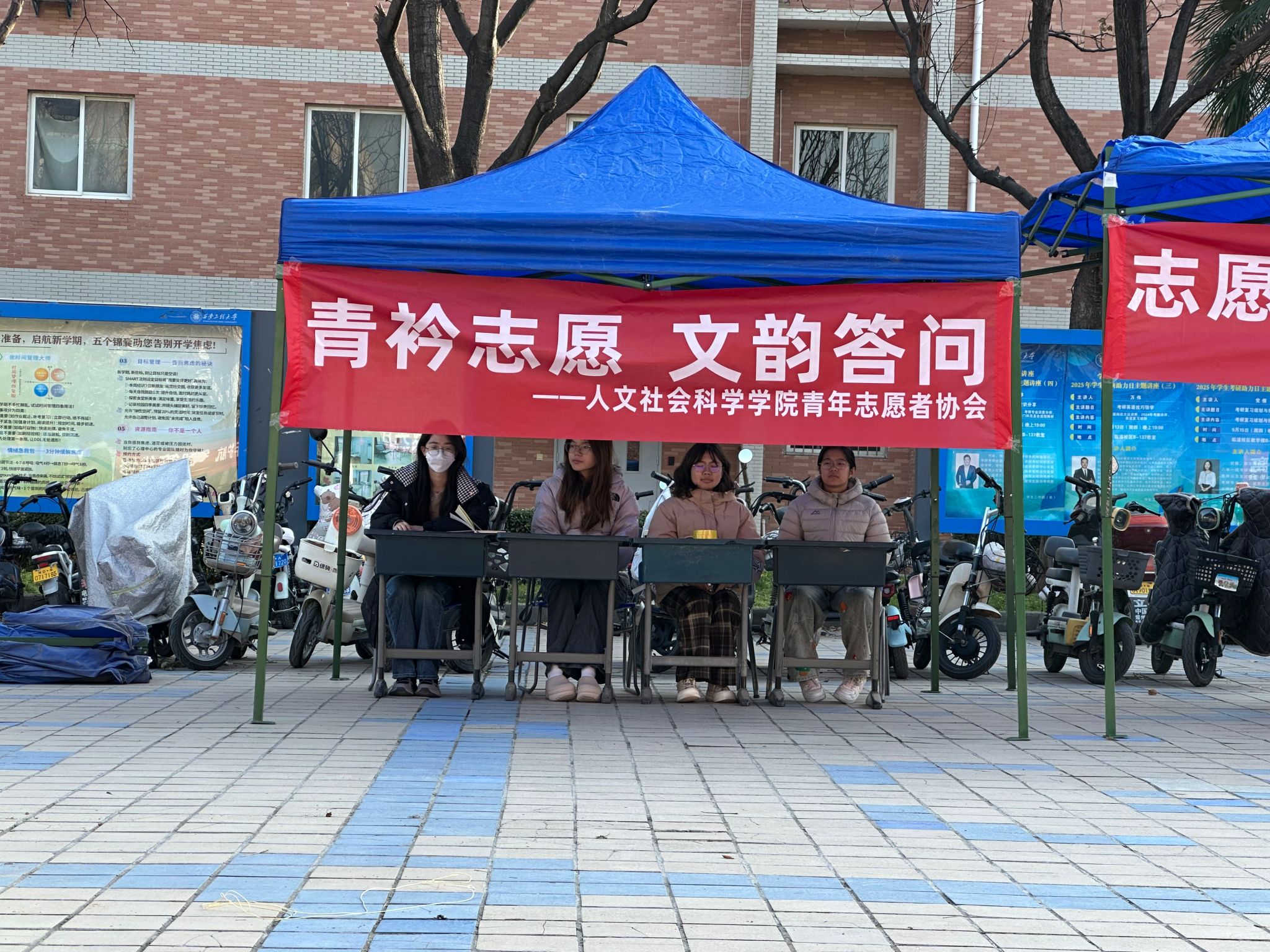 为弘扬“奉献、友爱、互助、进步”的志愿精神,12月4日,人文社会科学学院在“国际志愿者日”来临之际,在临潼校区中心广场举办“青衿志愿·文韵答问”主题知识问答活动。本次活动由人文社会科学学院青年志愿者协会主办,旨在以轻松活泼的形式普及志愿服务相关知识,传递志愿精神内涵,激发广大青年学子投身志愿服务的热情与责任感。